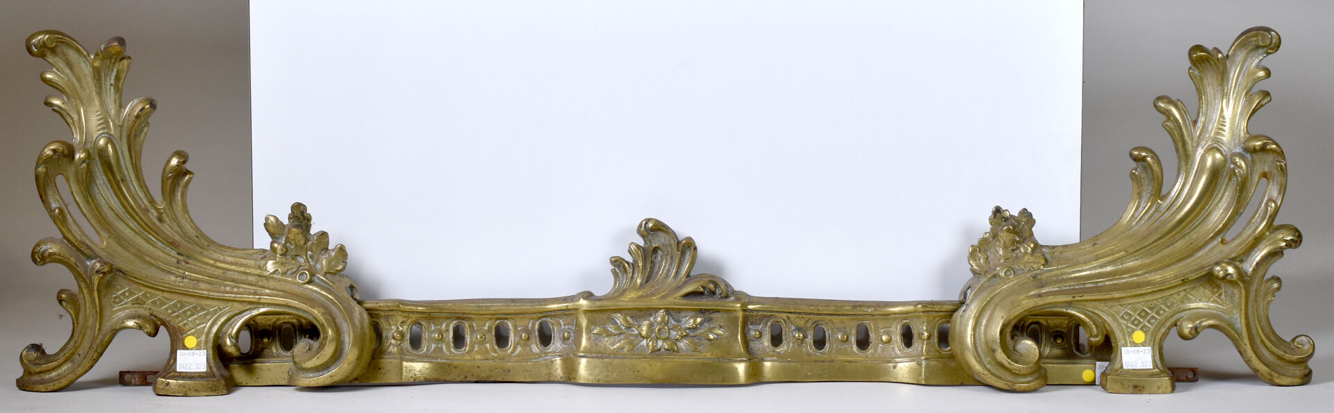 Barre de cheminée en bronze à décor d’acanthes. Style Louis XV. Haut. : 26 cm – Larg. : 110 cm.