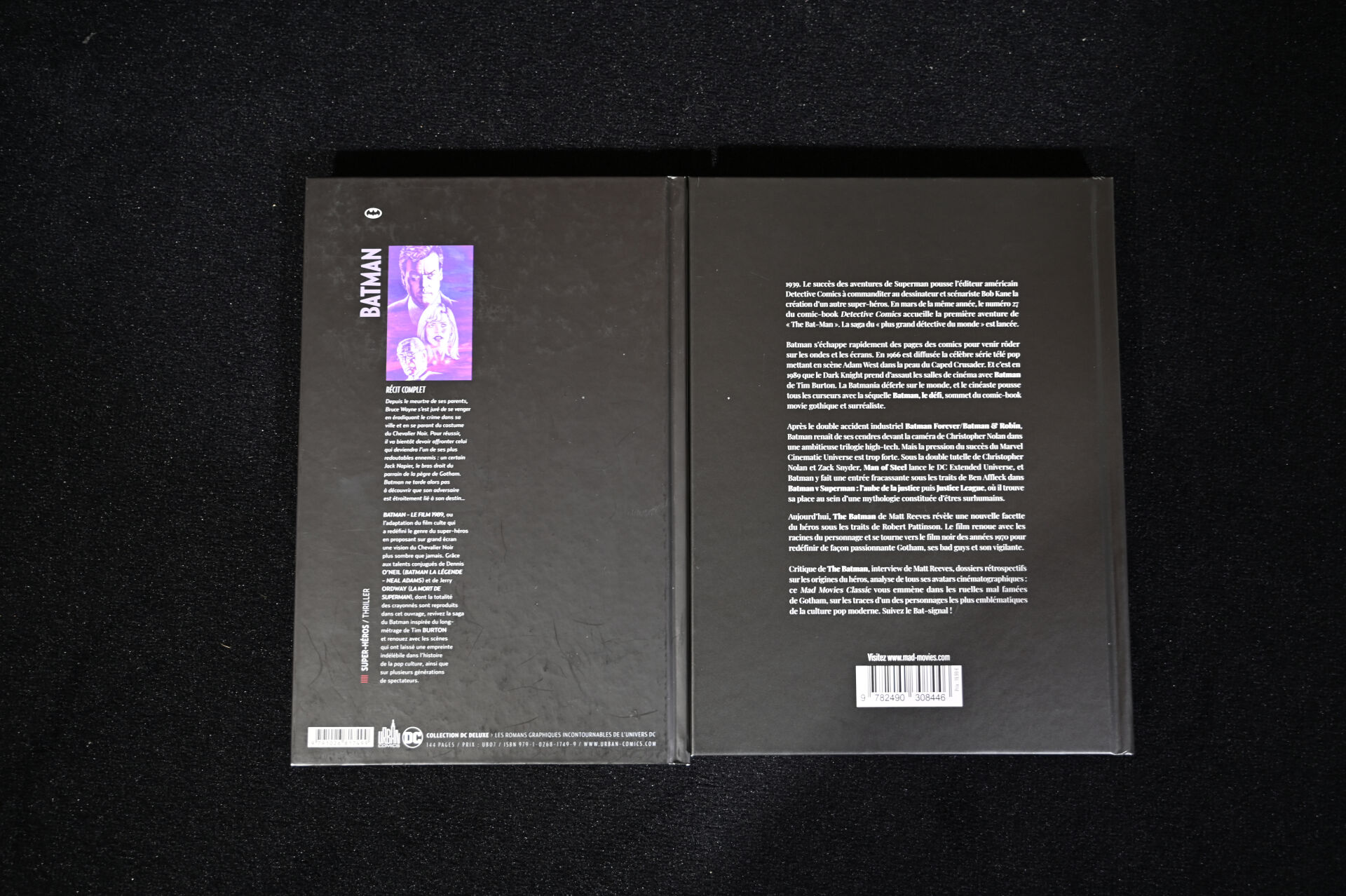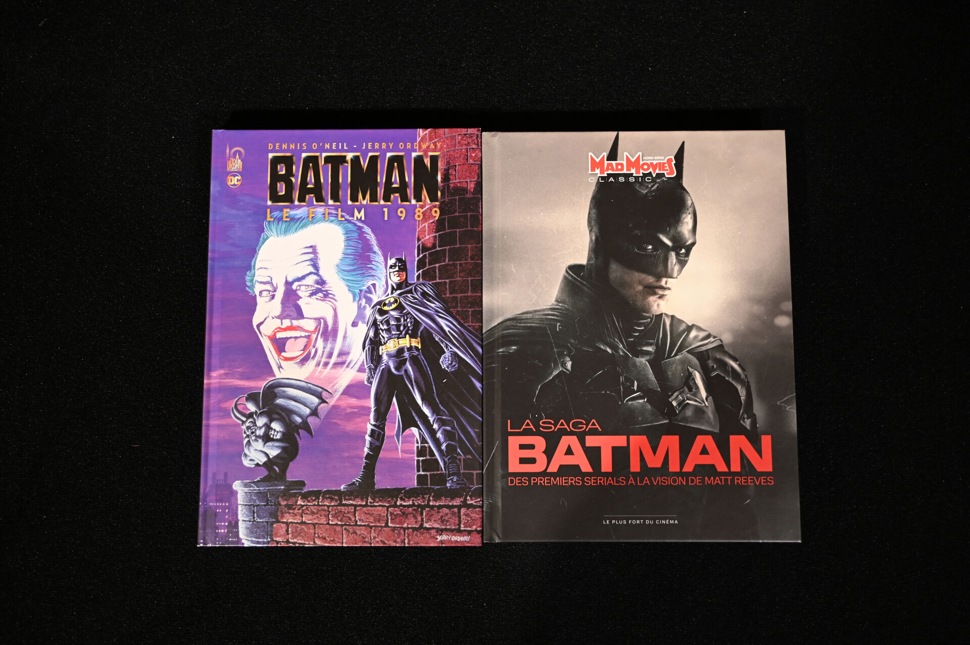 BATMAN. Ensemble de deux ouvrages soit « Batman – Le film 1989 » Dennis O’Neil et Jerry Orday, Urban Comics, 2022 et « La Saga Batman – Des premiers serials à la vision de Matt Reeves » Mad Movies, Mars 2022. On joint deux cadres avec des affiches imprimées.