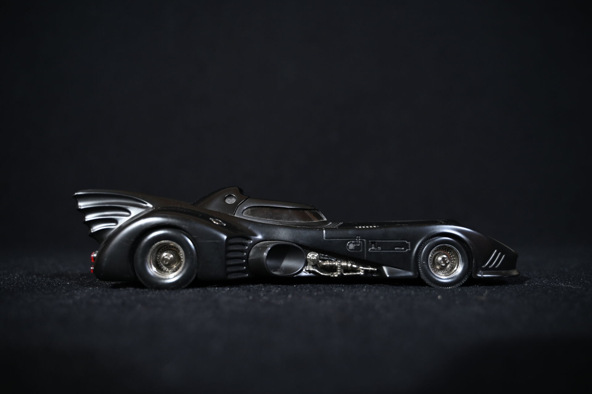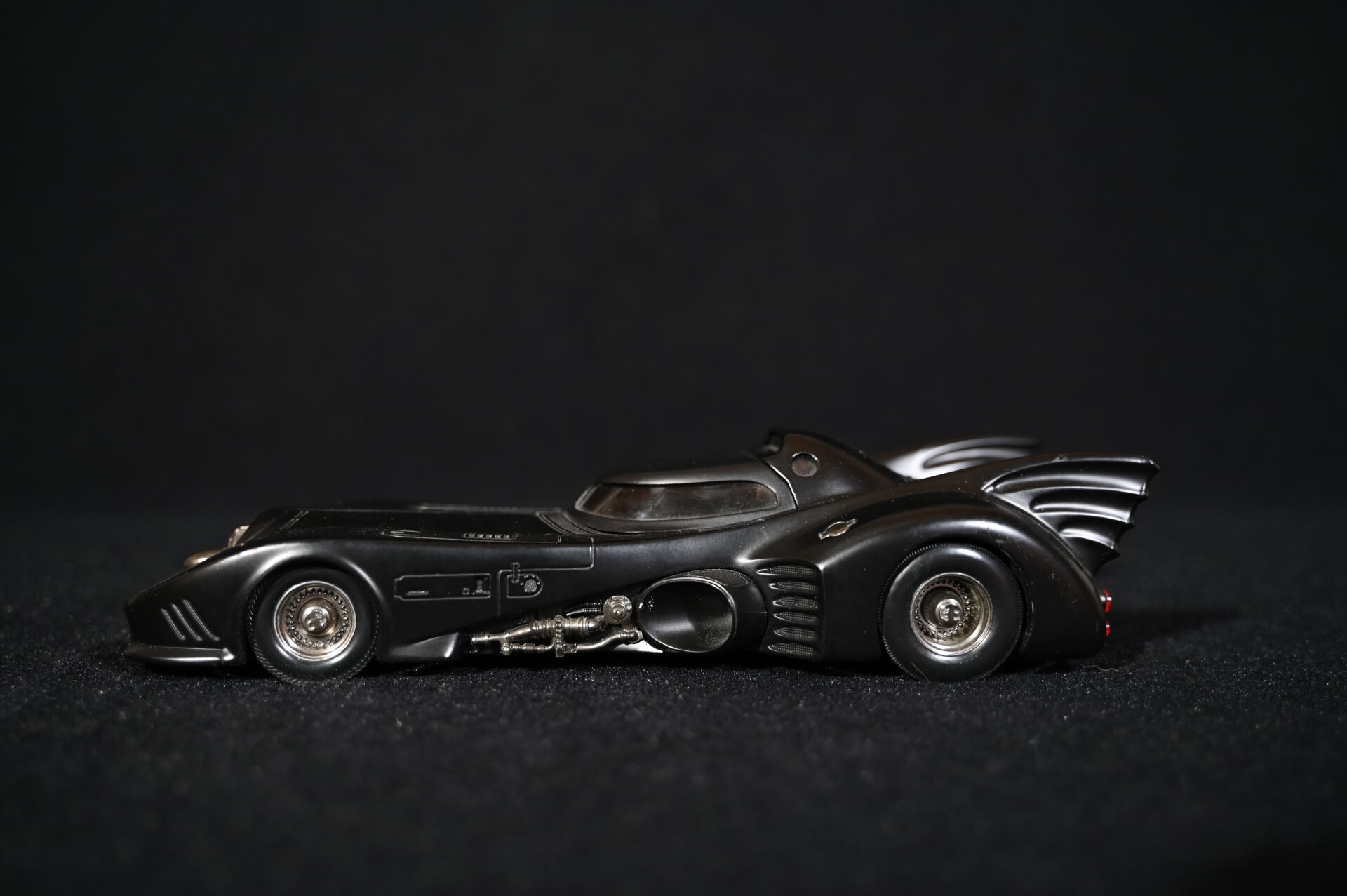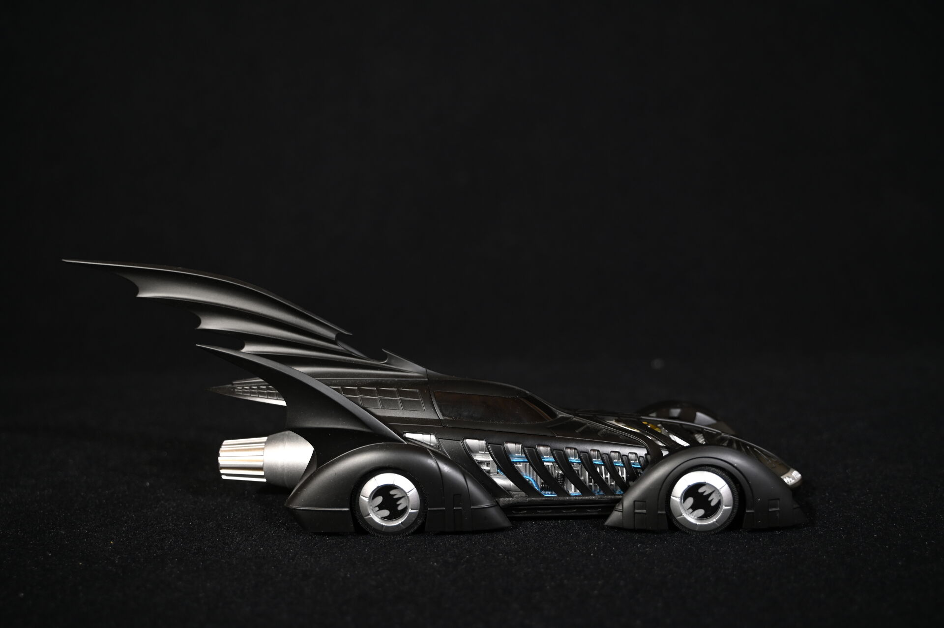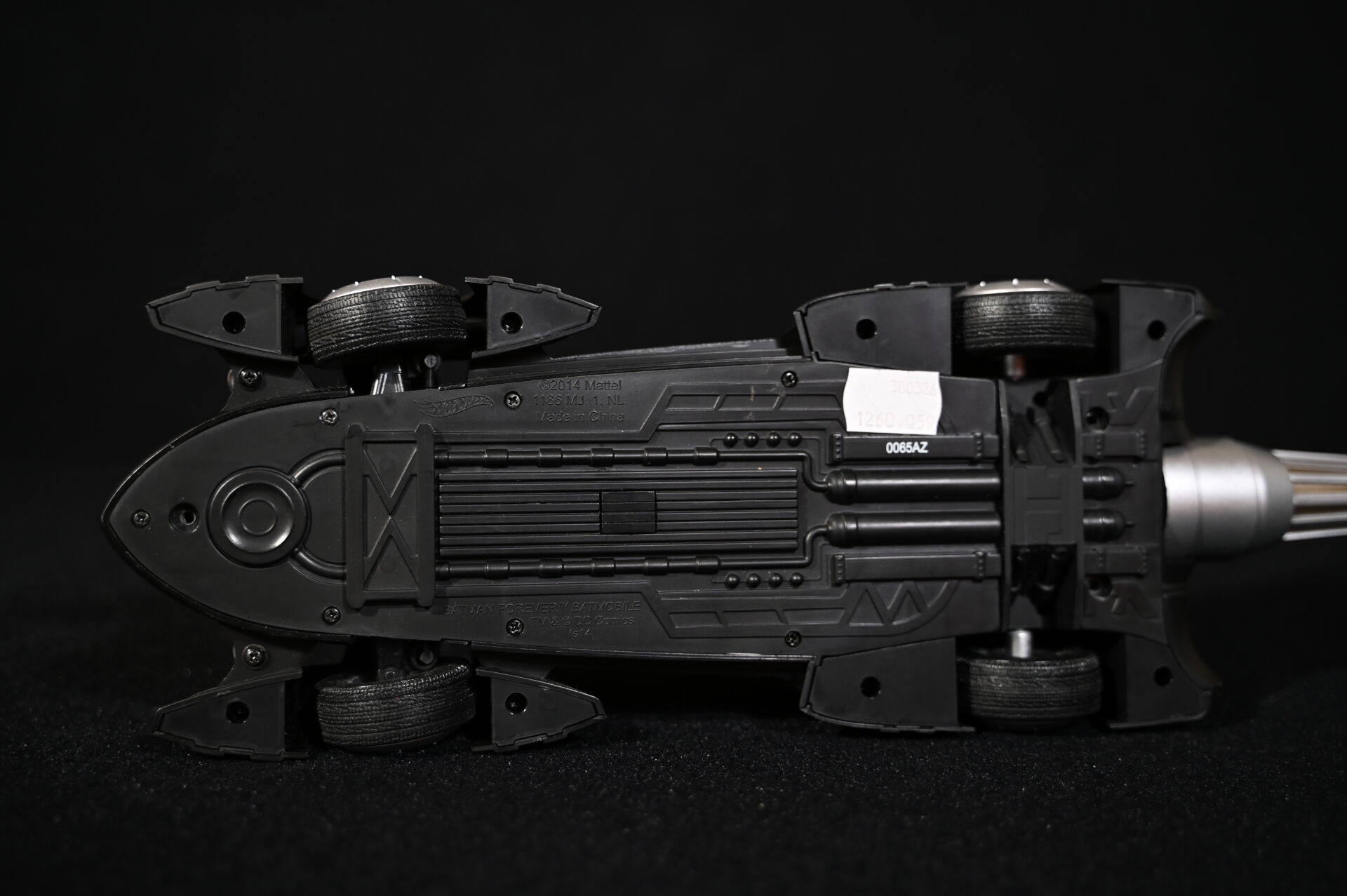BATMAN. Ensemble de trois véhicules Batmobiles issus de générations différentes. Marques MATTEL HOTWHEELS (une de 2014) et JADA TOYS (échelle 1/18 et électrifiée piles). Dim. de la plus haute : 15 x 43 cm.