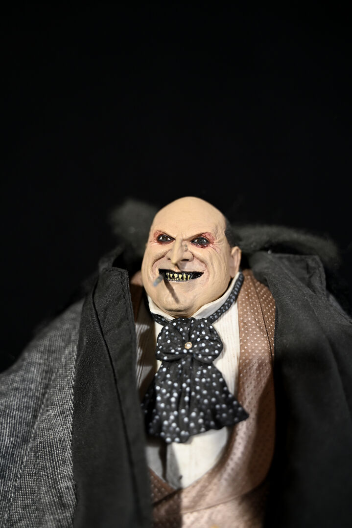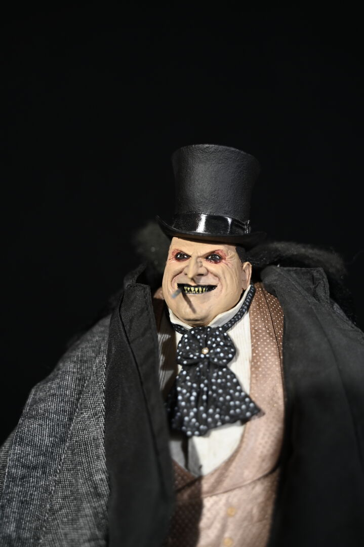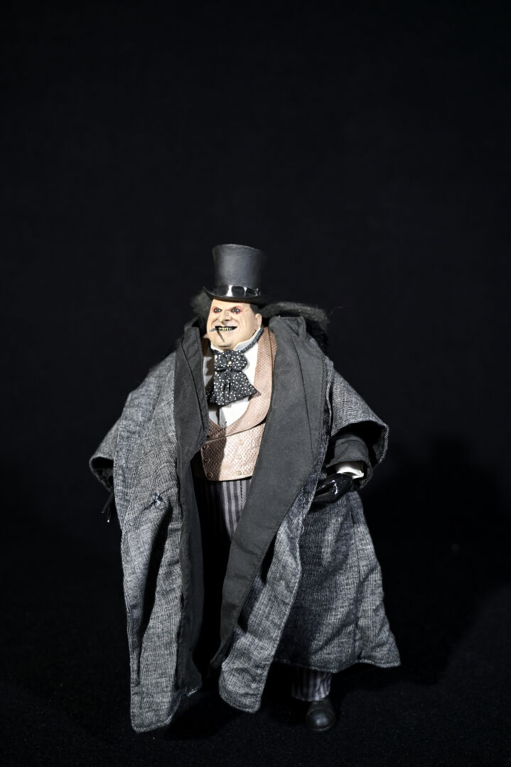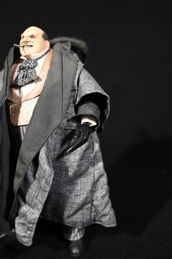 BATMAN – NECA. Figurine réaliste du Pingouin (Dany DeVito) avec son haut-de-forme et son monocle (cassé). 2015. Haut. : 41 cm.