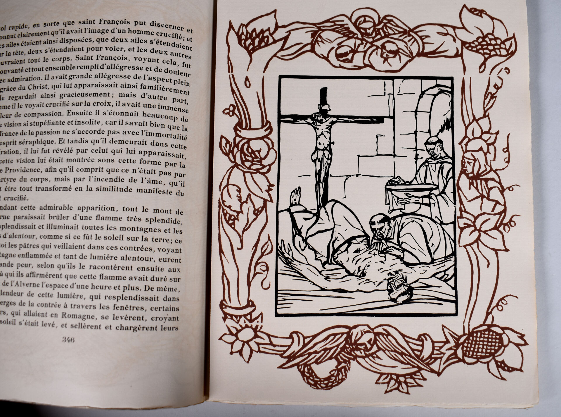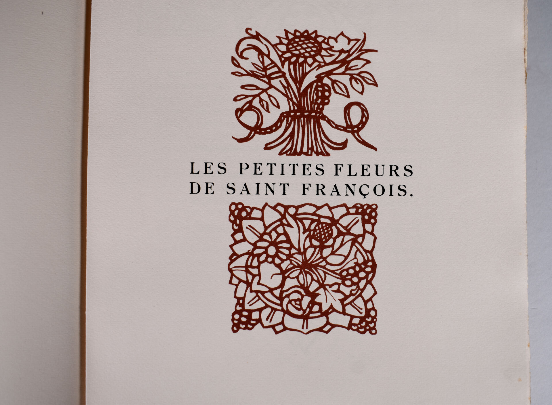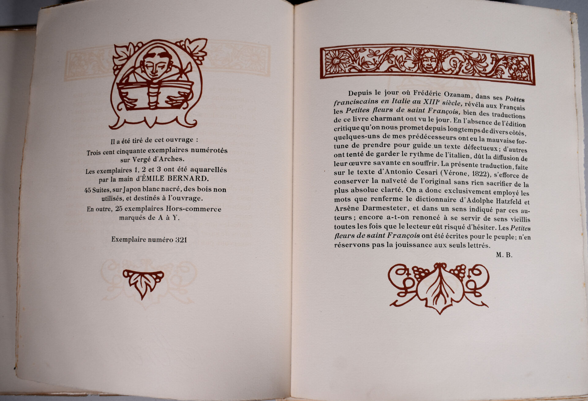 [BERNARD]. LES PETITES FLEURS DE SAINT-FRANÇOIS. P., Ambroise Vollard, 1928. Grand in-4 en feuilles sous couverture à rabats illustrée. ÉDITION ILLUSTRÉE de 302 BOIS originaux d’Émile BERNARD. Tirage limité à 375 exemplaires numérotés sur vergé d’Arches.