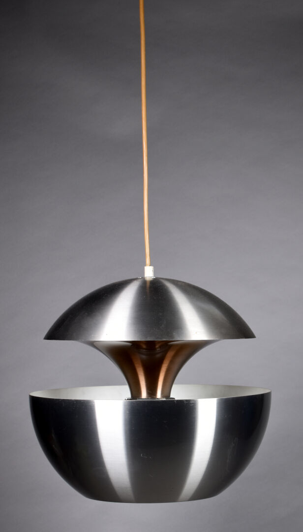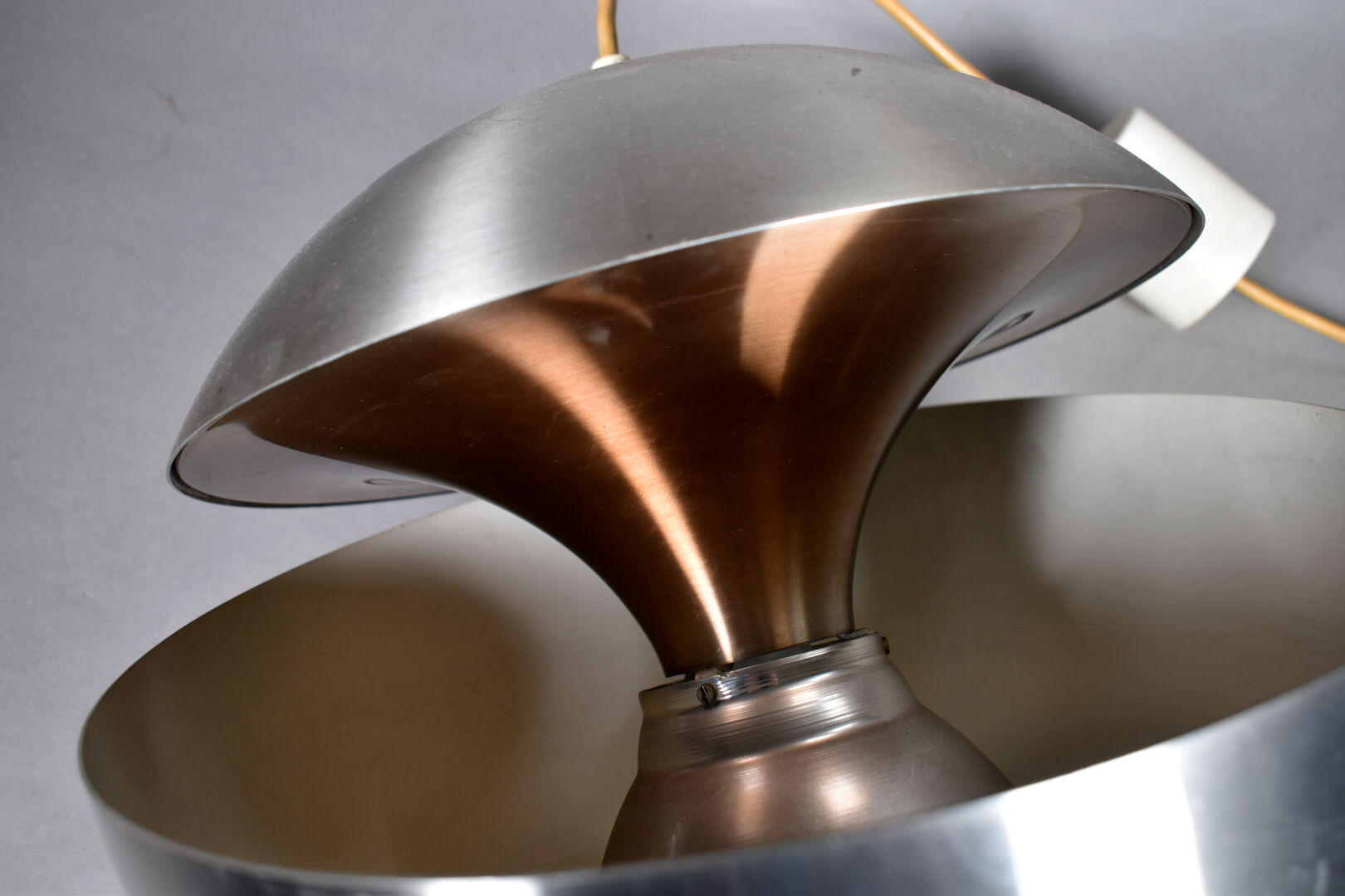 BERTRAND BALAS édition RAAK Amsterdam. Suspension en métal brossé modèle « fontaine jaillissante ». Vers 1970. Haut. : 34 cm.