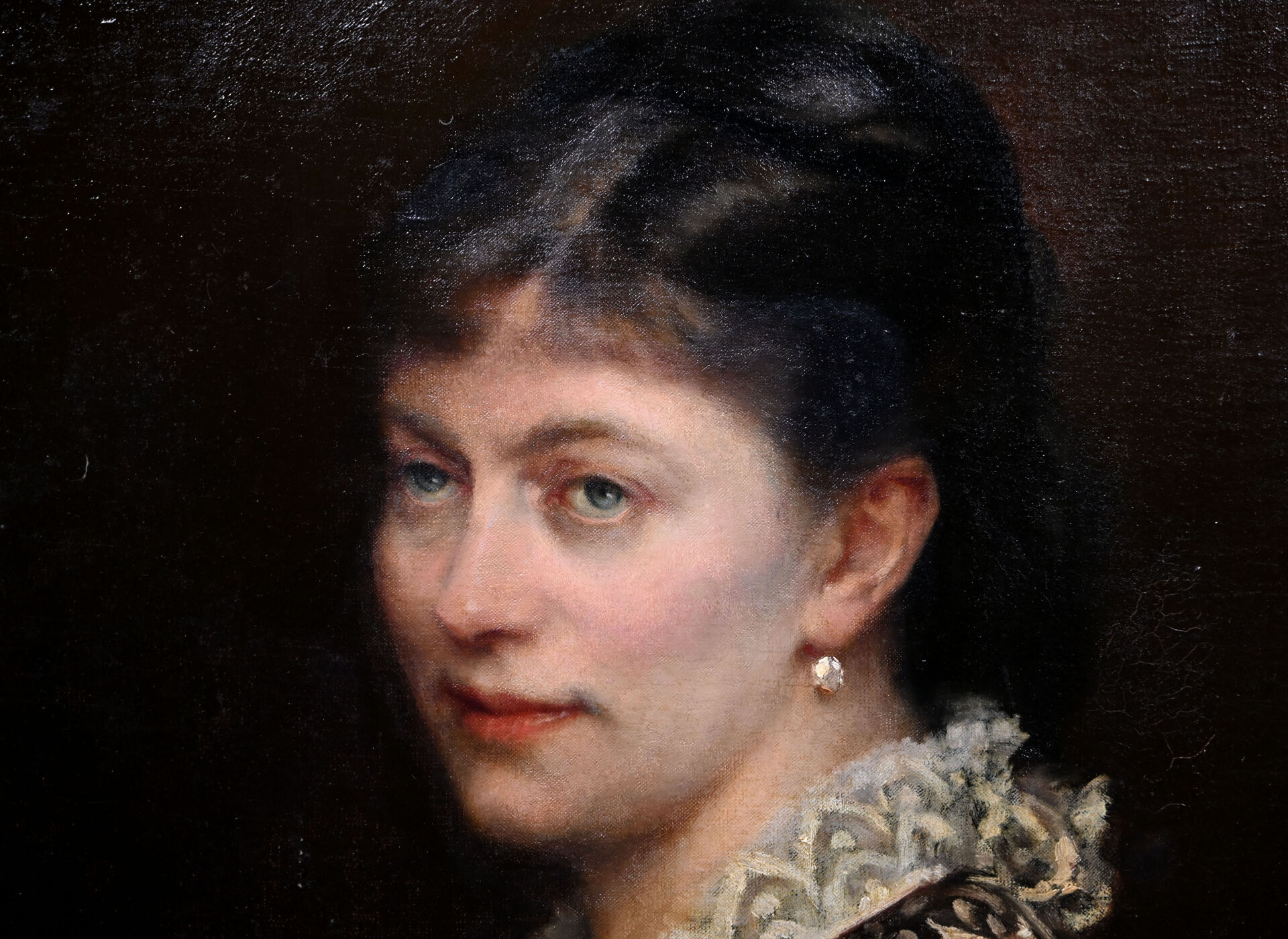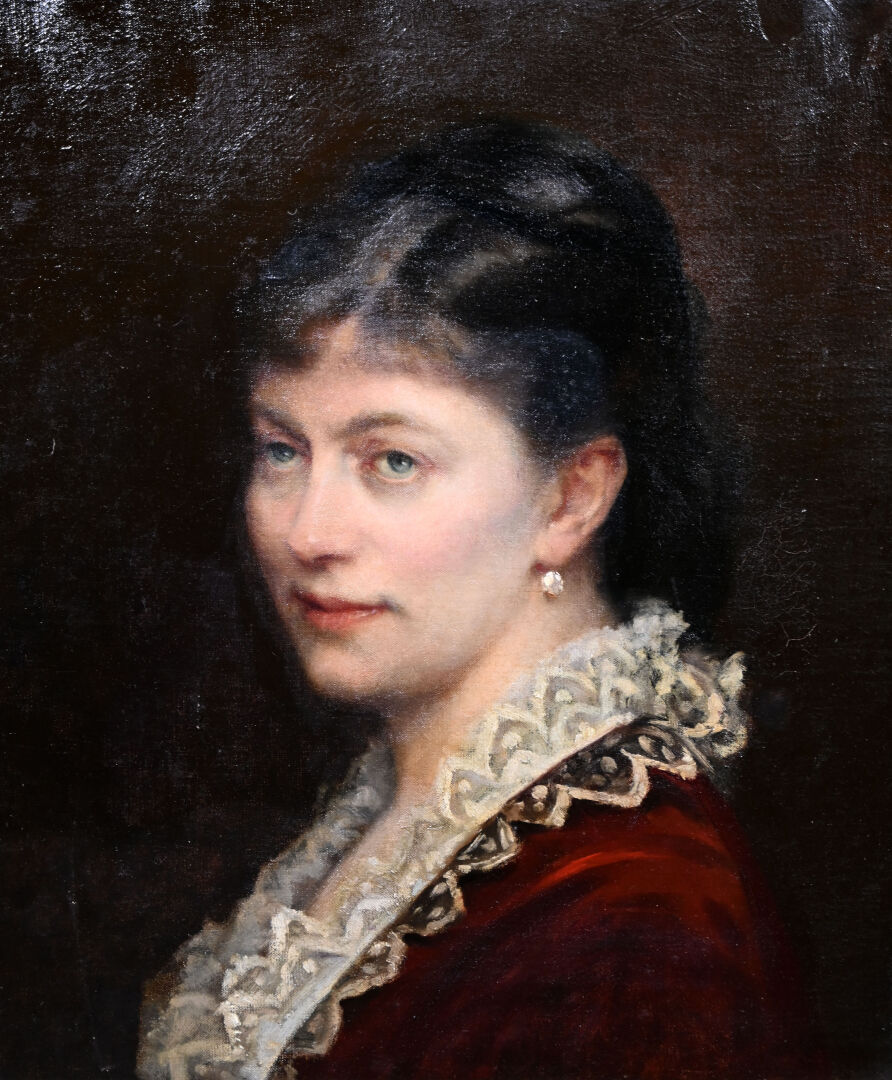 BLANCHARD (XIXe – XXe siècle). Portrait de femme au col de dentelle. Huile sur toile, signée au dos sur le châssis (repeints). 52 x 43 cm.