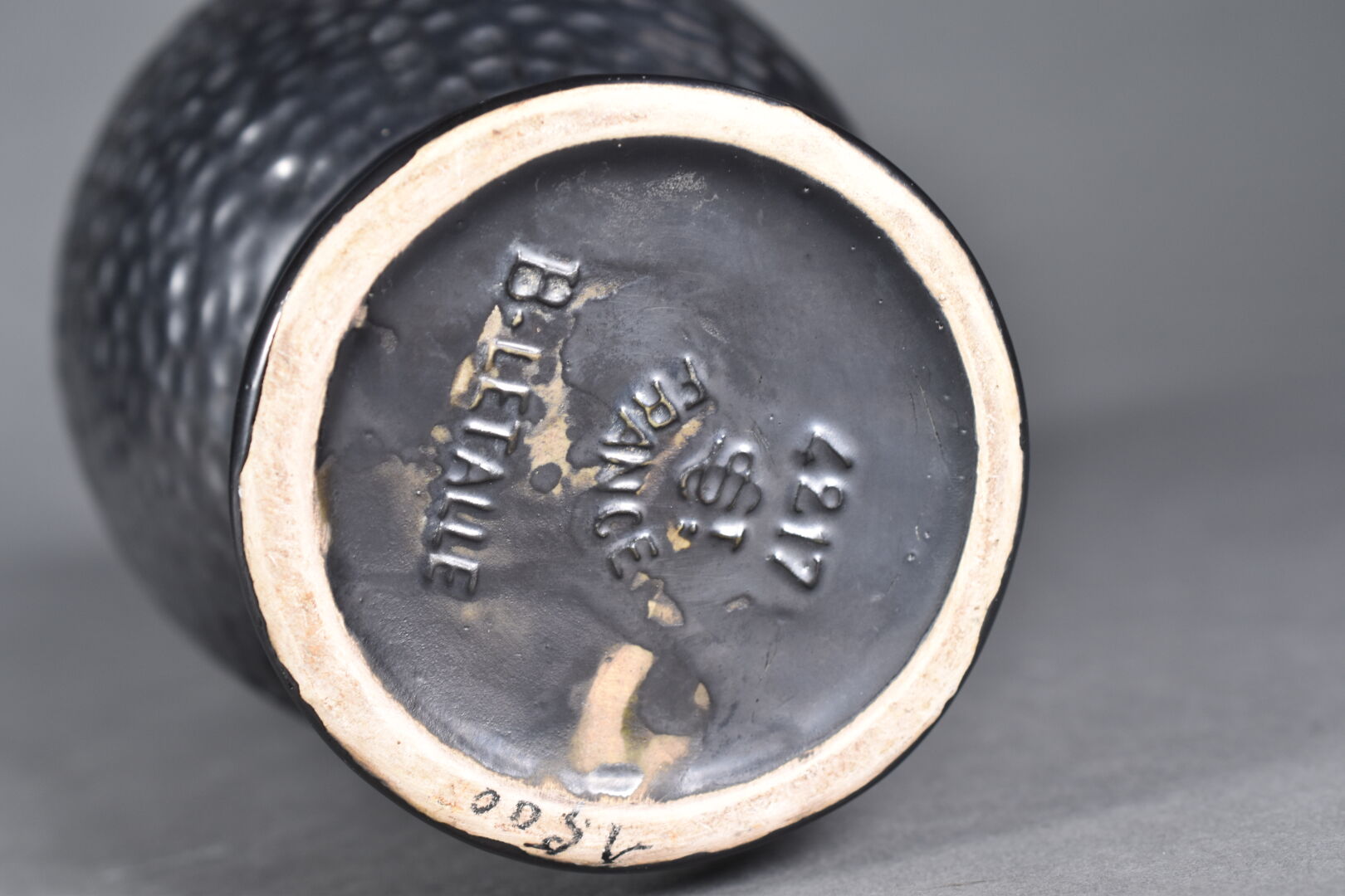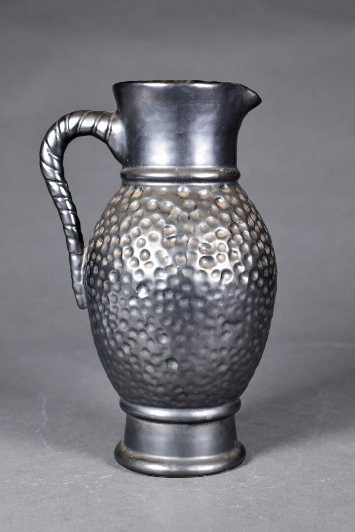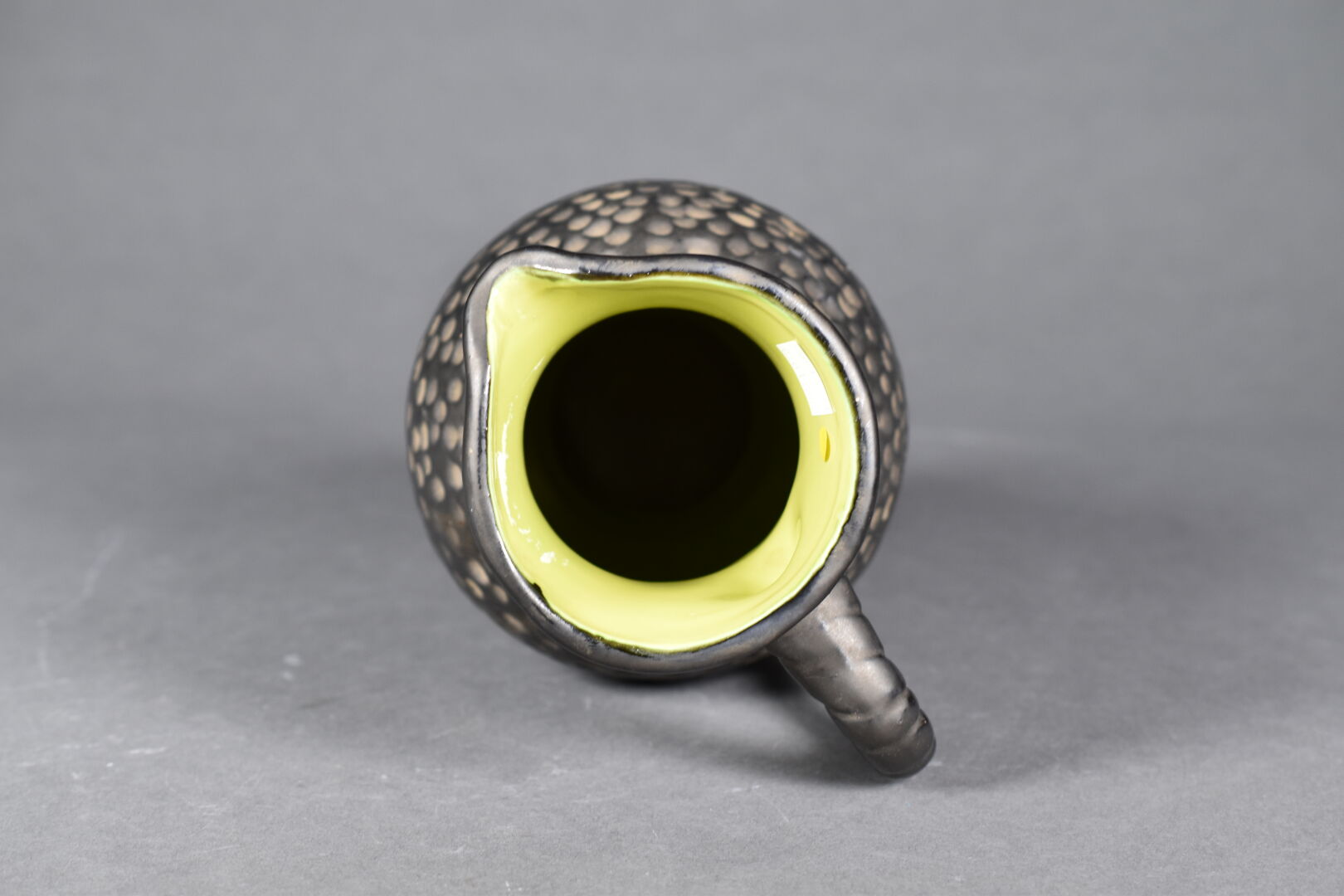 Blanche LETALLE et ST CLEMENT. Verseuse en céramique émaillée noir à reflets métalliques, l’intérieur en vert. Marquée sous la base. Haut. : 29,5 cm.