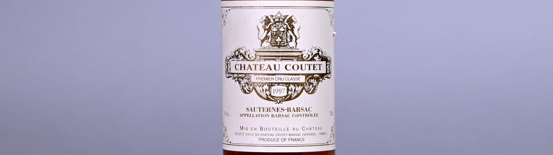 BORDEAUX – 1 bouteille, Sauternes-Barsac, Château Coutet, 1er Grand Cru Classsé, 1997. BG. Etiquette avec quelques traces et un petit accroc.