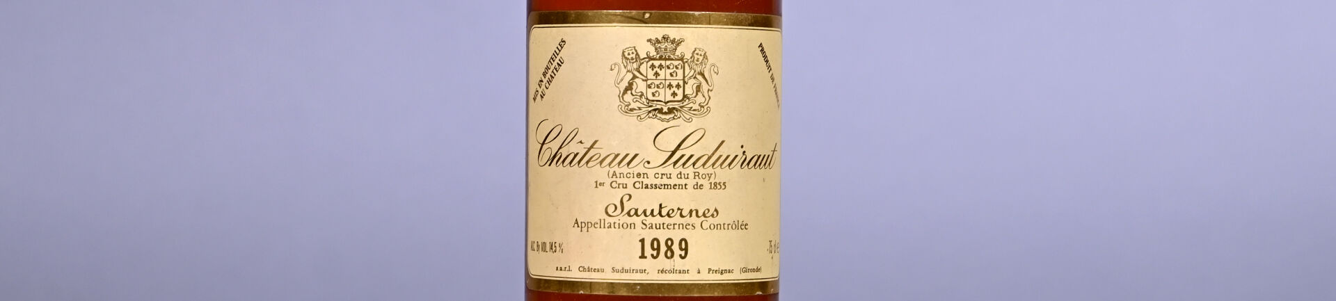 BORDEAUX – 1 bouteille, Sauternes, Château Suduiraut, 1er Grand Cru Classsé, 1989. BG. Capsule abimée et légèrement sale. Etiquette légèrement sale.