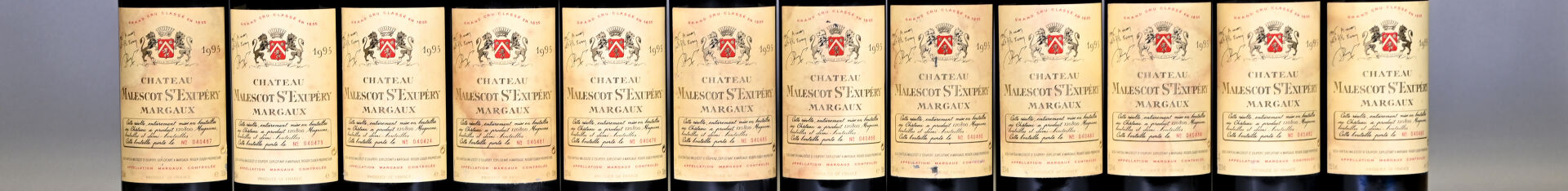 BORDEAUX – 1 CBO, 12 bouteilles, Margaux, Château Malescot-Saint-Exupéry, 3ème Grand Cru Classé, 1995.1 BG (+). Capsules avec des traces et légèrement abimées.