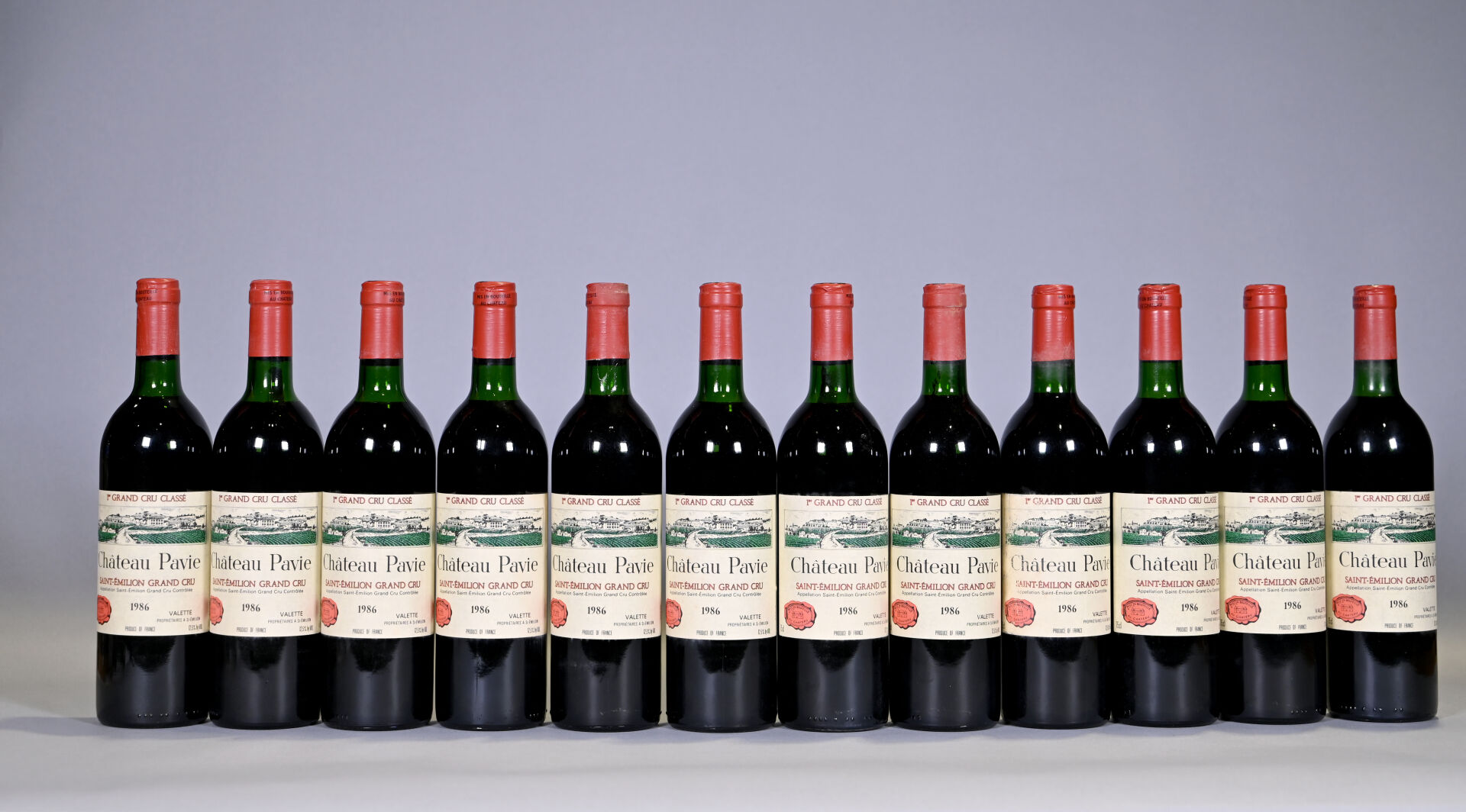 BORDEAUX – 1 CBO, 12 bouteilles, Saint-Emilion Grand Cru, Château Pavie, 1er Grand Cru Classé A, 1986. 3 BG, 2 TLB (+), 3 TLB et 4 TLB (-). Capsules légèrement incurvées et légèrement sales.
