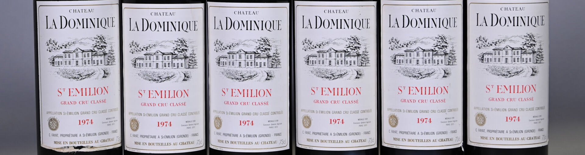 BORDEAUX – 1 CBO, 6 bouteilles, Saint-Emilion Grand Cru, Château La Dominique, Grand Cru Classé, 1974. 4 BG et 2 TLB. Capsules légèrement sales. Une étiquette est légèrement abimée.