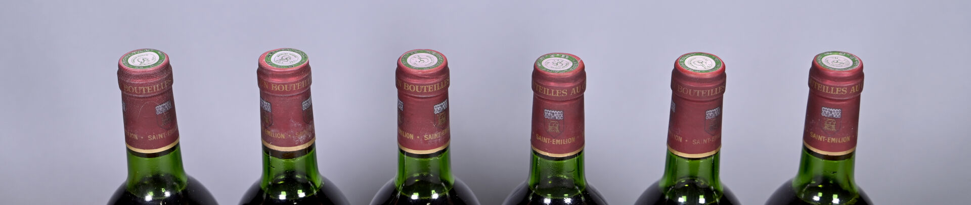 BORDEAUX – 1 CBO, 6 bouteilles, Saint-Emilion Grand Cru, Château La Dominique, Grand Cru Classé, 1974. 4 TLB (+) et 2 TLB. Capsules légèrement sales. Une étiquette est légèrement abimée.