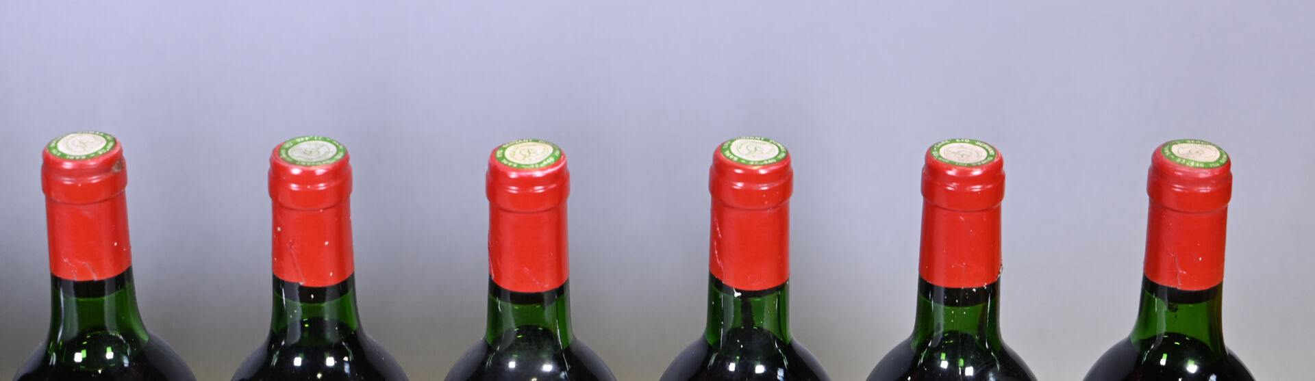 BORDEAUX – 12 bouteilles, Lalande-de-Pomerol, Château Teysson, 1982 (9) et millésime ? (3). 4 BG, 7 TLB et 1 BE. Capsules légèrement sales et déformées. Etiquettes sales, dégradées à très dégradées dont deux sont manquantes et une presque entièrement manquante.