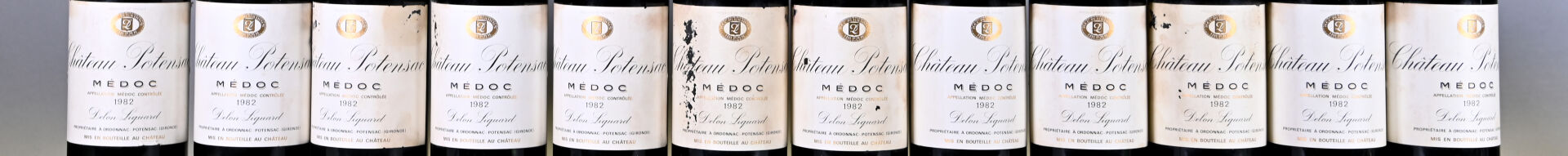 BORDEAUX – 12 bouteilles, Médoc, Château Potensac, 1982. 4 BG et 8 BG (-). Capsules avec quelques légères traces et dont une présente un pli important en bas de jupe. Etiquettes légèrement sales, tachées et légèrement abimées à abimées.