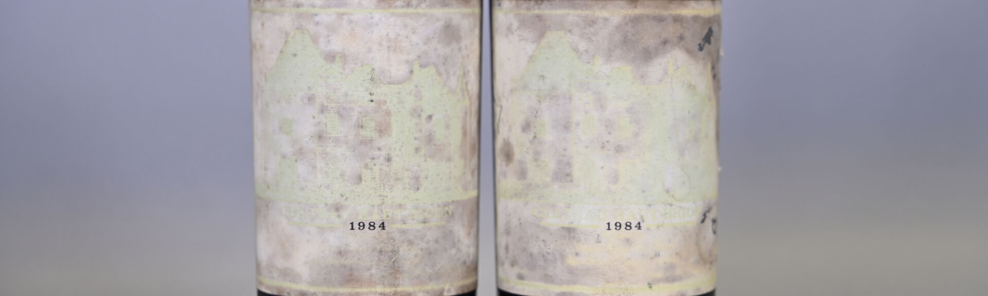 BORDEAUX – 2 bouteilles, Graves, Château Haut-Brion, 1er Grand Cru Classé, 1984. Niveaux à 2 cm et 2,7 cm. Capsules légèrement sales. Etiquettes sales à très sales avec des traces d’humidité, usées et presque entièrement illisibles.