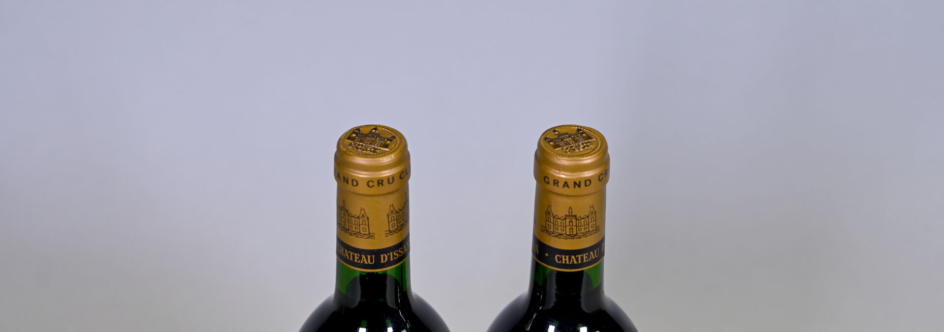 BORDEAUX – 2 bouteilles, Margaux, Château d’Issan, 3ème Grand Cru Classé, 1990. Etiquettes avec des traces et très légèrement abimées.