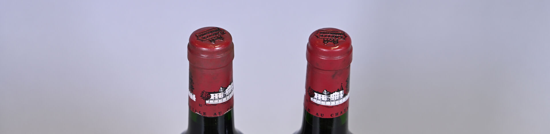 BORDEAUX – 2 bouteilles, Pauillac, Château Lafite Rothschild, 1er Grand Cru Classé, 1992. Capsules légèrement sales dont une est légèrement abimée en bas de jupe. Etiquettes sales avec des traces d’humidité.