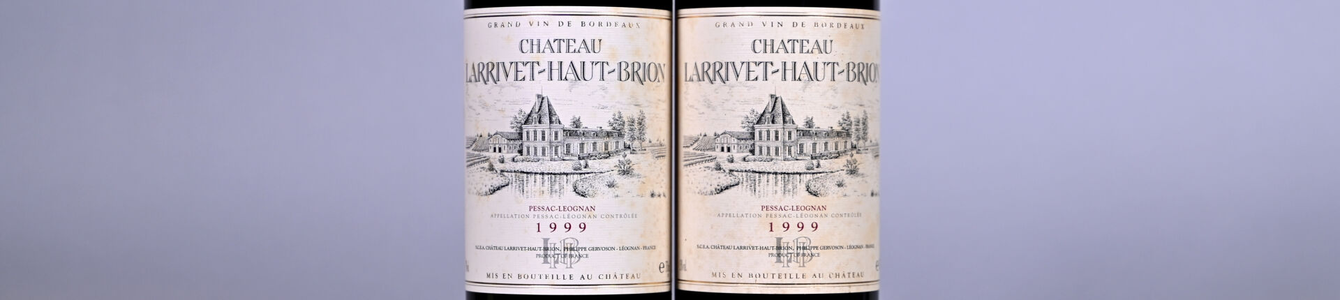 BORDEAUX – 2 bouteilles, Pessac-Léognan, Château Larrivet-Haut-Brion, 1999. 1 BG (+). Etiquettes tachées et légèrement sales.