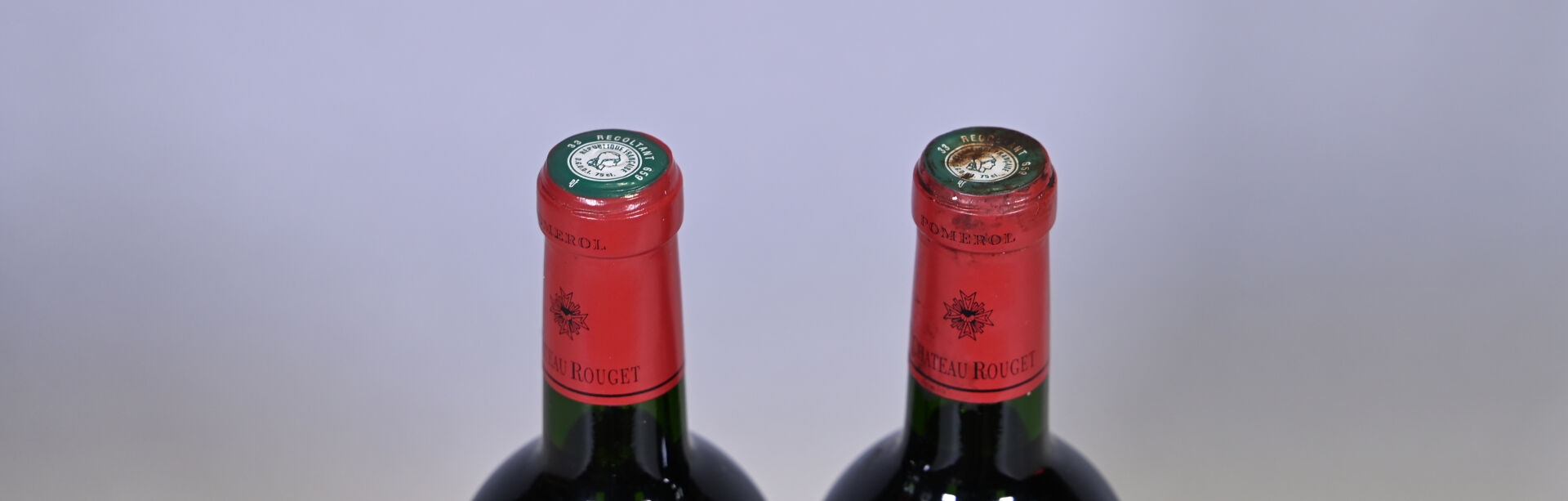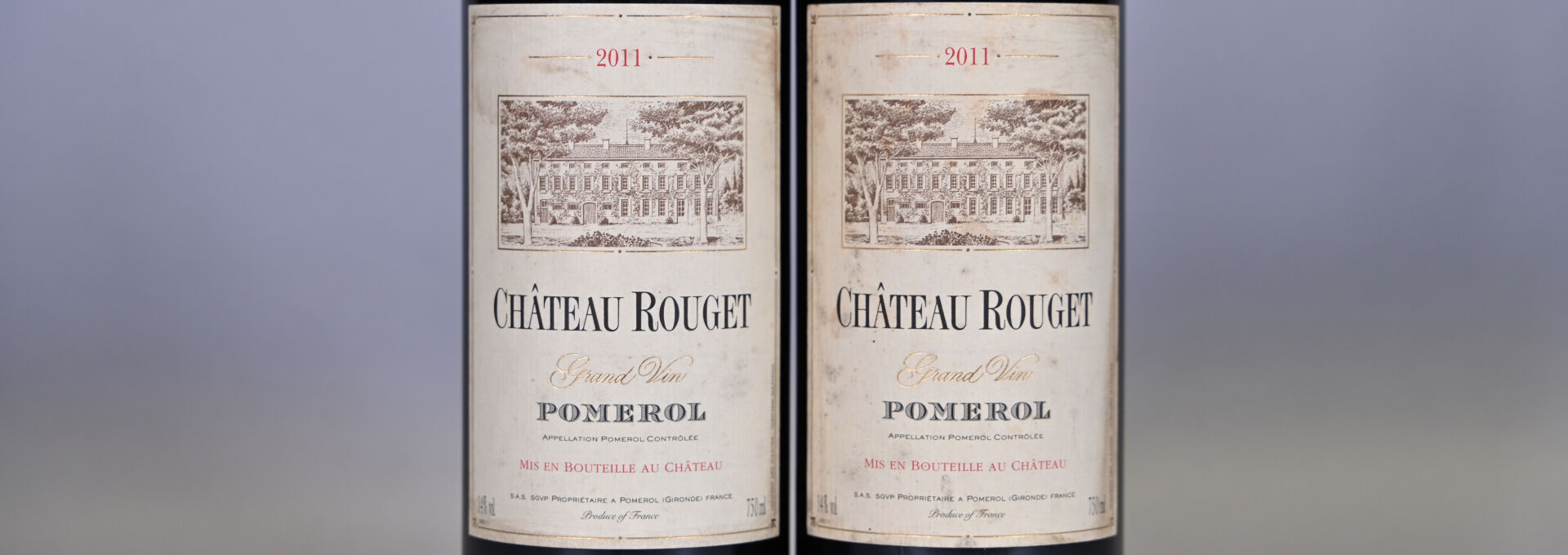 BORDEAUX – 2 bouteilles, Pomerol, Château Rouget, 2011. Une capsule légèrement sale. Etiquettes légèrement sales.
