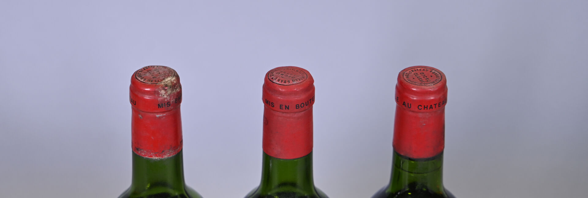 BORDEAUX – 3 bouteilles, Saint-Emilion Grand Cru, Château Guadet Saint-Julien, Grand Cru Classé, 1981. 1 HE (+), 1 HE (-) et 1 ME (+). Capsules légèrement sales à sales. Etiquettes légèrement sales à sales avec des traces d’humidité.
