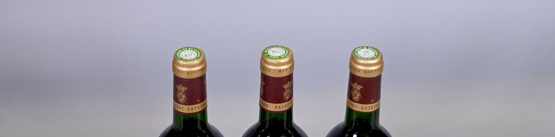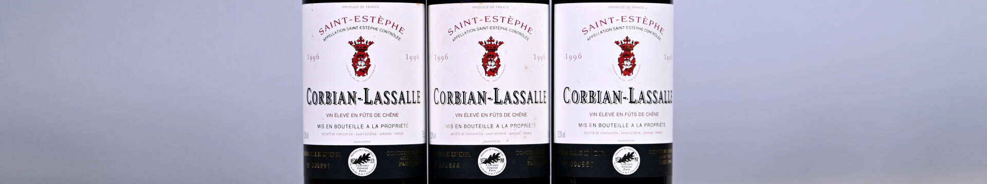 BORDEAUX – 3 bouteilles, Saint-Estèphe, Corbian-Lassalle, 1996. 2 BG et 1 BG (-). Etiquettes très légèrement sales.