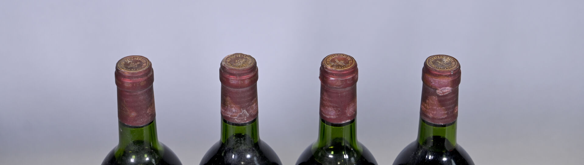 BORDEAUX – 4 bouteilles, Haut-Médoc, Les Brulières de Beychevelle, 1982. 2 BG, 1 TLB (-) et 1 HE. Capsules incurvées et sales. Etiquettes légèrement sales à sales et légèrement abimées à abimées.
