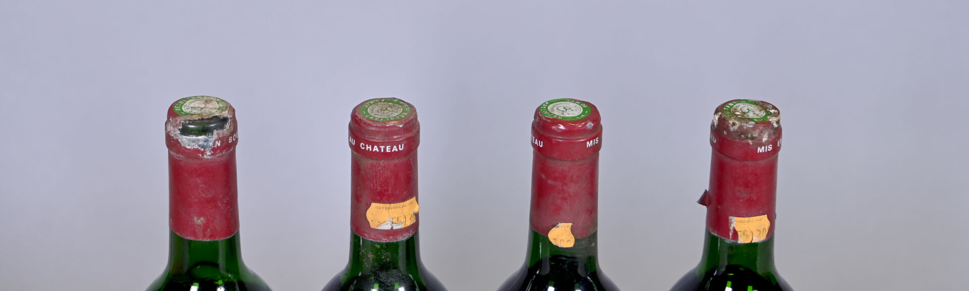 BORDEAUX – 4 bouteilles, Pauillac, Château Haut-Bages Averous, 1987. 1 BG (+), 2 HE (+) et 1 HE (-). Capsules légèrement sales à sales dont deux sont abimées. Etiquettes légèrement sales dont trois sont légèrement abimées.