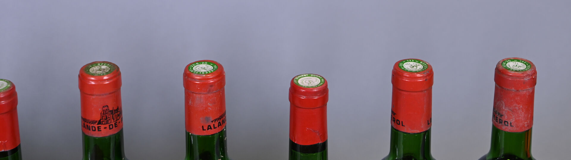 BORDEAUX – 9 bouteilles, Lalande-de-Pomerol, Château Teysson, 1970 (4) et millésime ? (5). En l’état.