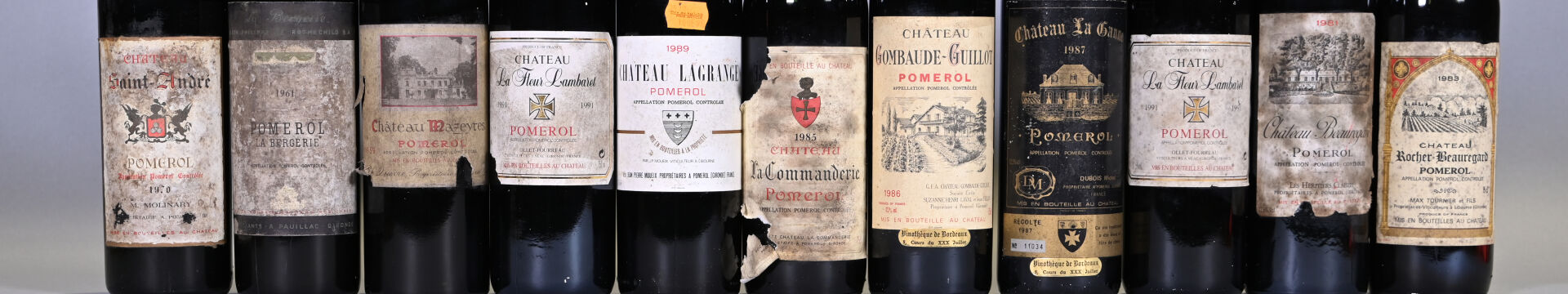 1 bouteille, Pomerol, Baron Philippe de Rothschild SA, La Bergerie, 1961. HE (-). Capsule sale. Etiquette sale à très sale et légèrement abimée.