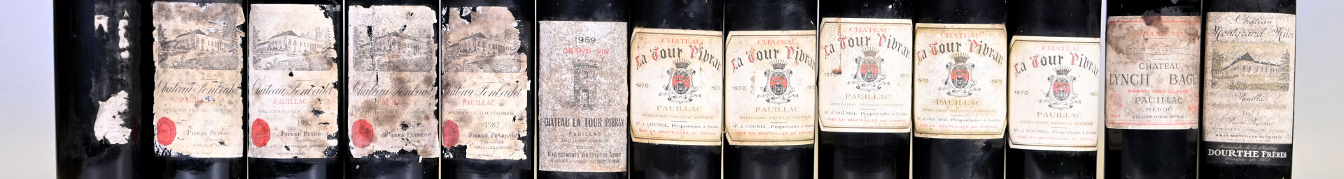5 bouteilles, Pauillac, Château La Tour Pibran, 1970. 1 TLB (-), 2 HE, 1 HE (-) et 1 ME. Capsules et étiquettes légèrement sales à sales.