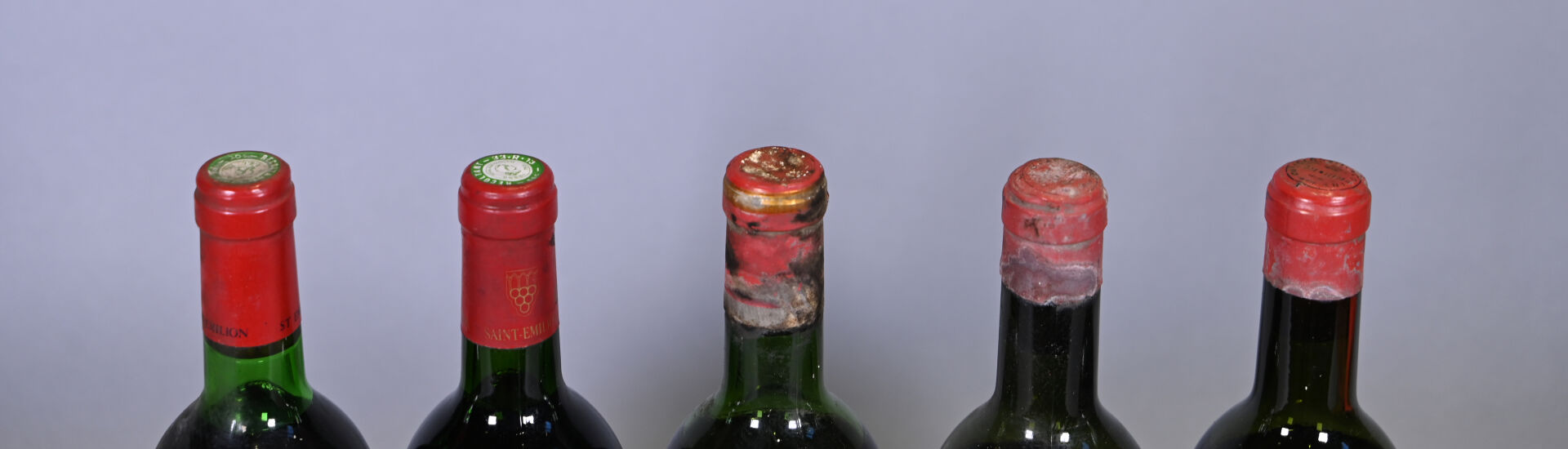 2 bouteilles, Saint-Emilion Grand Cru, Clos des Jacobins, Grand Cru Classé, 1960. ME (-) et BE / Vidange. Capsules sales et tachées. Etiquettes très sales avec des points de décollement et légèrement dégradée pour une et dégradée pour l’autre.