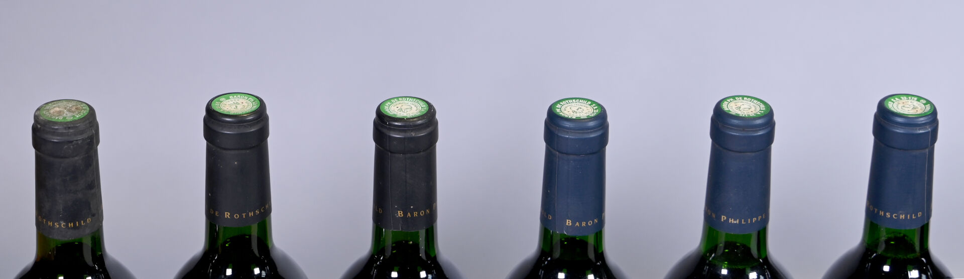 5 bouteilles, Bordeaux, Baron Philippe de Rothschild, La Bélière, 1995 (3) et 1996 (2). En l’état.