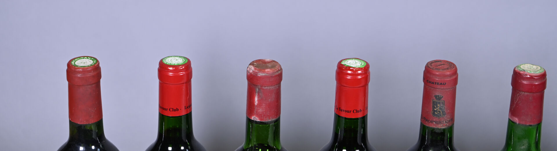 3 bouteilles, Lalande-de-Pomerol, Château Vieux Treytins, Le Savour Club, 1990. Etiquettes légèrement sales à sales dont une présente deux déchirures et l’autre est abimée avec un manque important sur son côté gauche.