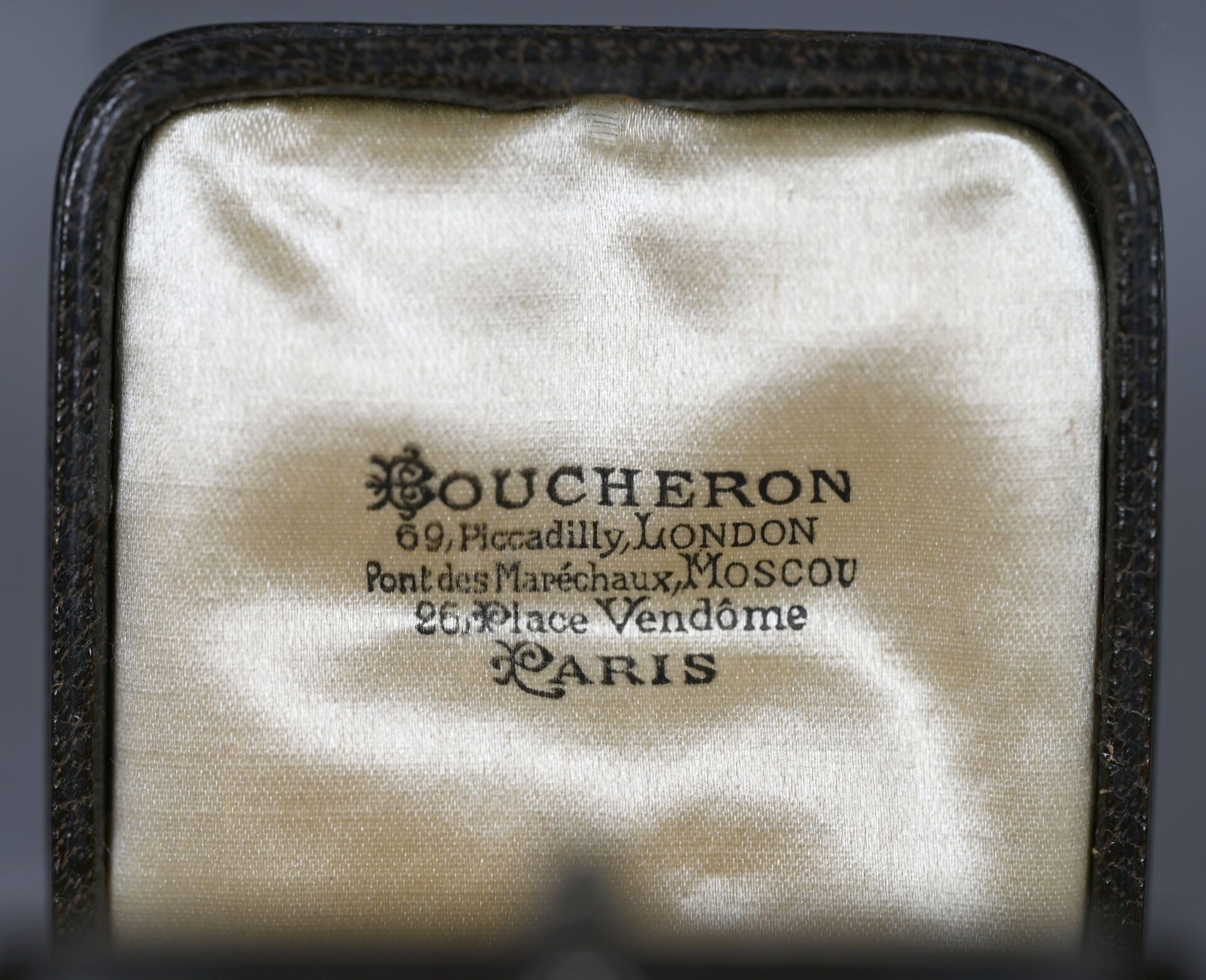 Son fondateur, Frédéric Boucheron avait un goût sûr, rempli d’originalité et sa maîtrise des techniques artisanales attirent rapidement l’attention des grandes familles royales et des aristocrates. Quelques discrets artisans ciseleurs vont travailler pour la maison afin de fournir des pièces d’une grande qualité telle que notre broche présentée ce jour.