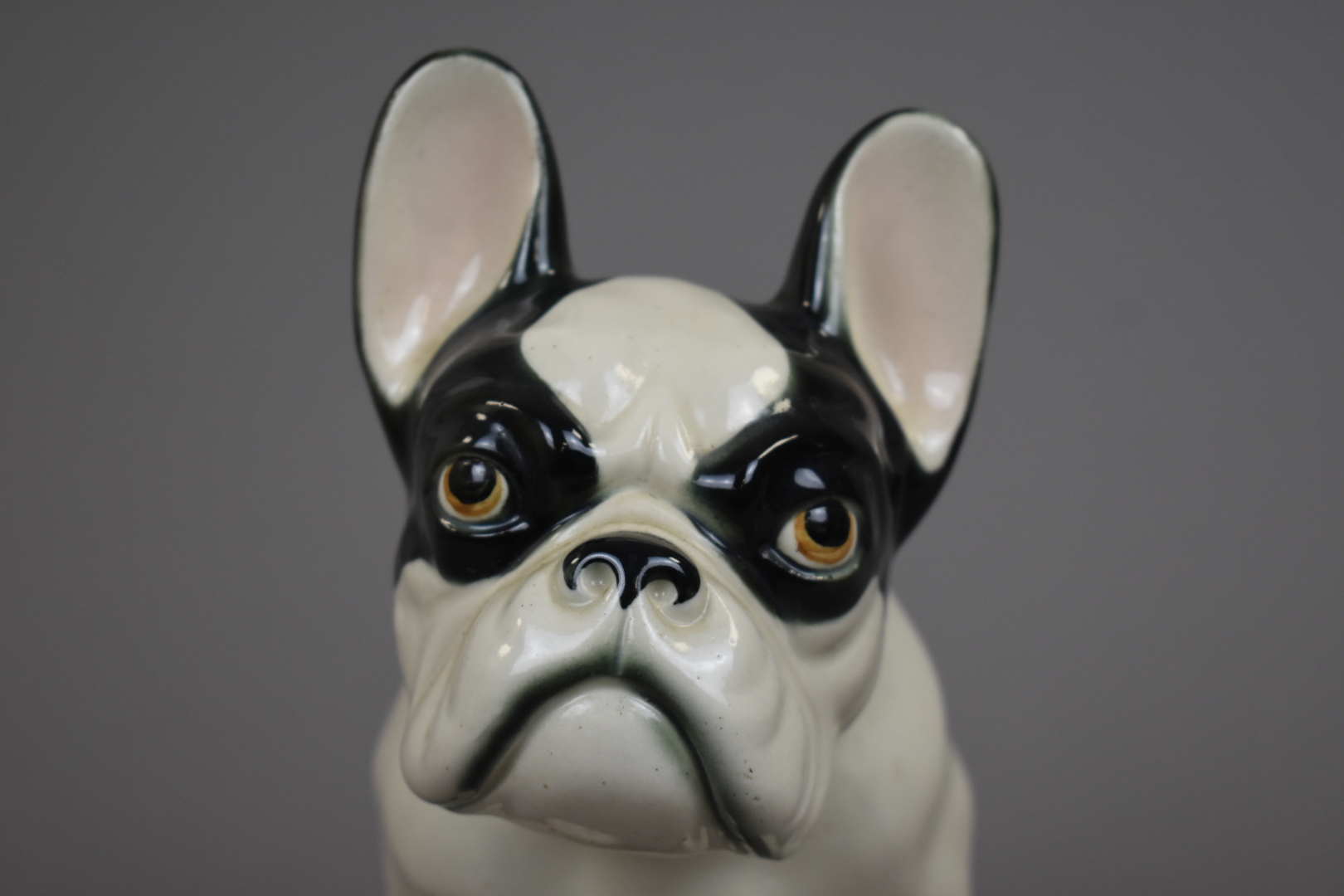 Bouledogue en céramique émaillée noir et blanc. XXe siècle. Haut. : 25 cm.