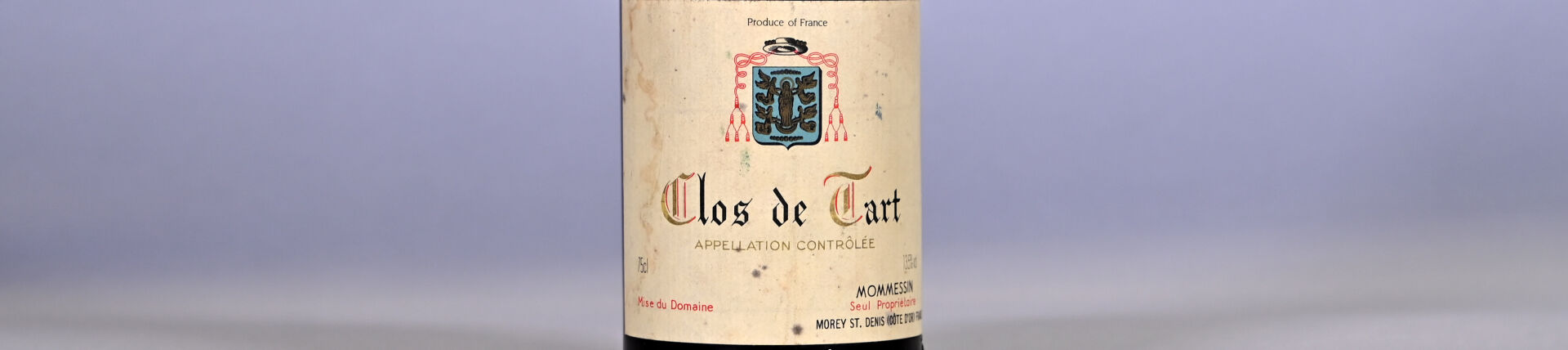 BOURGOGNE – 1 bouteille, Clos de Tart Grand Cru, Mommessin, 1982. 4 cm. Capsule avec des traces et légèrement déformée en son sommet. Collerette et étiquette légèrement sales avec quelques légères égratignures.