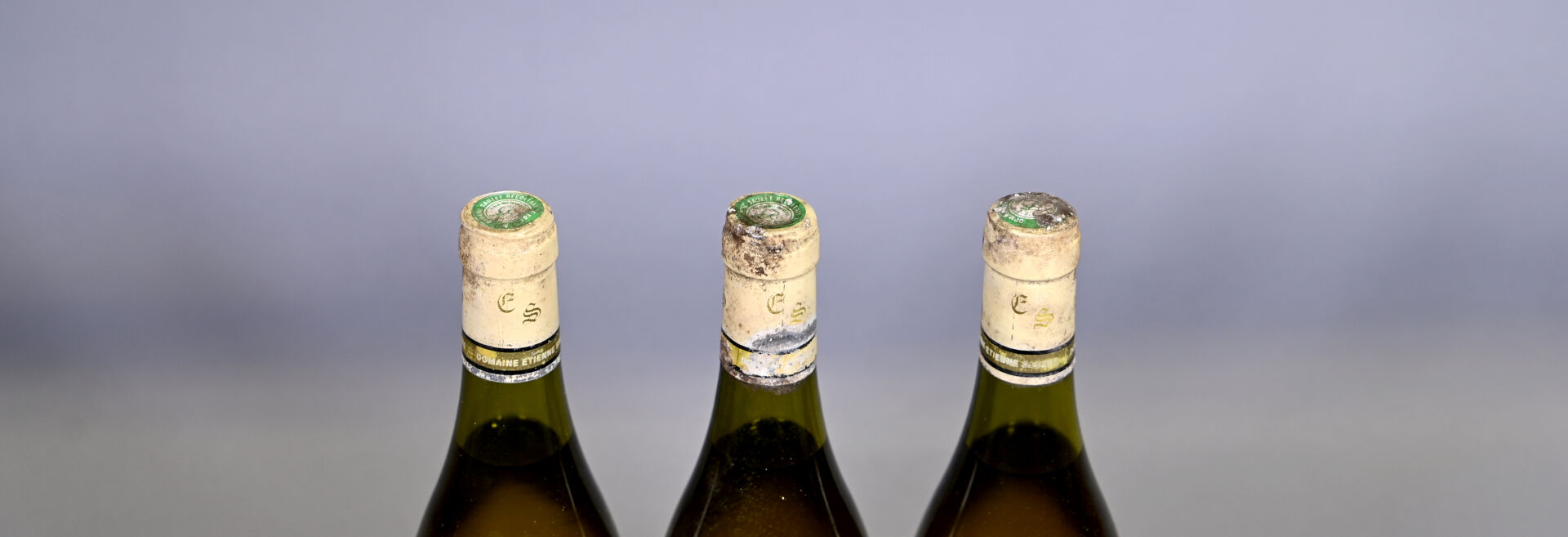 BOURGOGNE – 3 bouteilles, Puligny-Montrachet ‘Les Combettes’, Domaine Etienne Sauzet, 1988. Niveaux à 3,3 cm ou mieux. Capsules sales dont deux sont légèrement incurvées. Ecussons et étiquettes sales à très sales et dégradés.