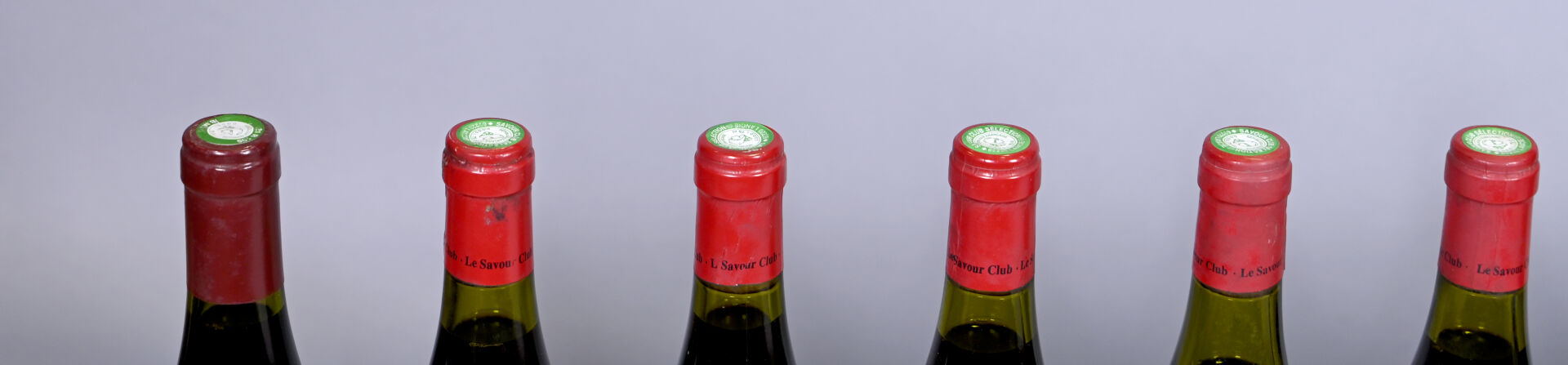 6 bouteilles, Aloxe-Corton 1er Cru, Le Savour Club, 1993. Un niveau à 2,5 cm et un niveau à 3,5 cm. Capsules avec des traces, incurvées et dont une est abimée.