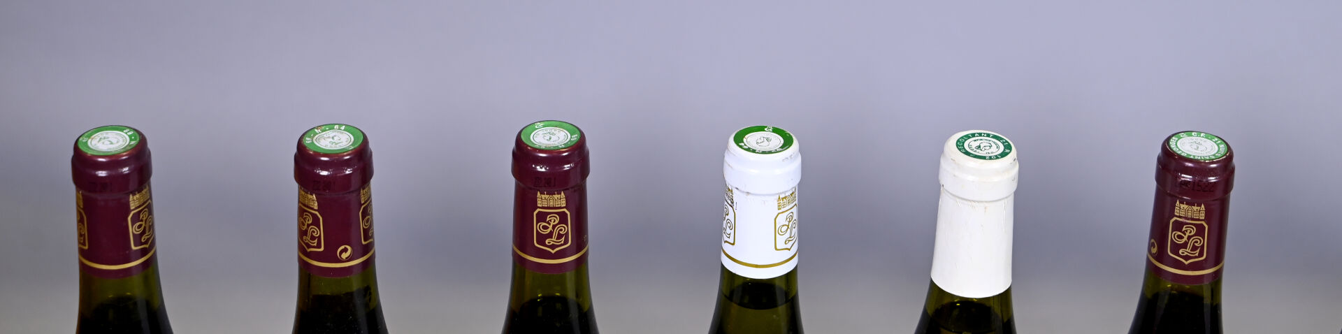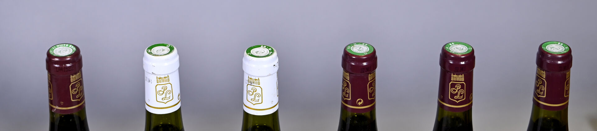 BOURGOGNE – Ensemble de 12 bouteilles composé de : 2 bouteilles, Bourgogne Hautes Côtes de Nuits, Pierre Laforest, 1998. Collerettes et étiquettes légèrement sales avec des traces d’humidité. 6 bouteilles, Bourgogne, Pierre Laforest, Cuvée Saint Vincent, 2000. 3 niveaux très légèrement bas. Etiquettes sales avec des traces d’humidité. 3 bouteilles, Bourgogne Aligoté, Pierre Laforest, 2000. 2 niveaux très légèrement bas 1 bouteille, Bourgogne Aligoté, Jacky Legou-Olivier, 1991. Collerettes et étiquettes légèrement sales à sales avec des traces d’humidité.