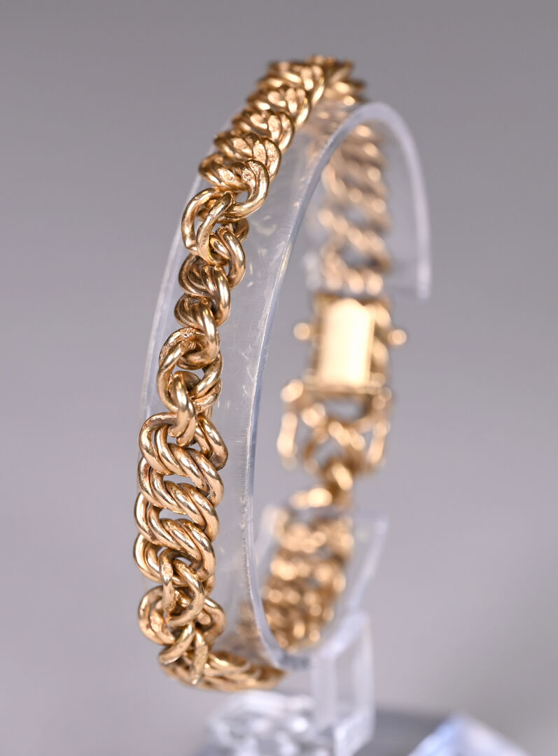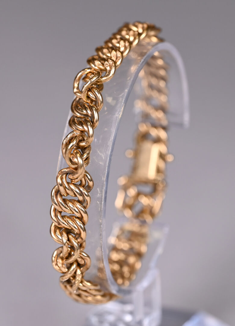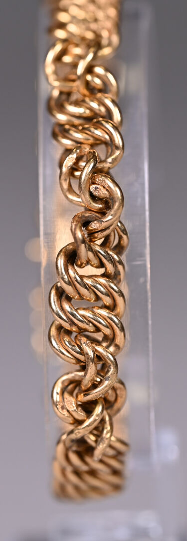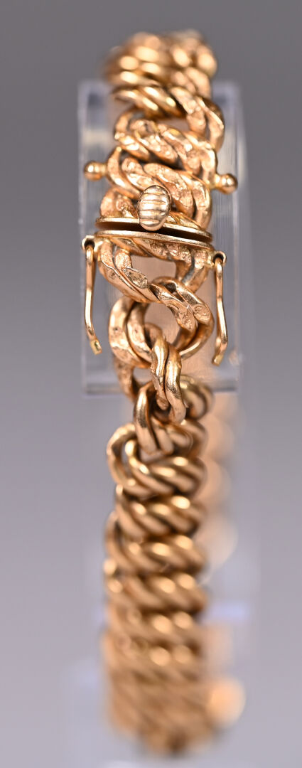 Bracelet à maille américaine en or jaune 18K 750/1000e (chocs). Poids. : 15,10 g.