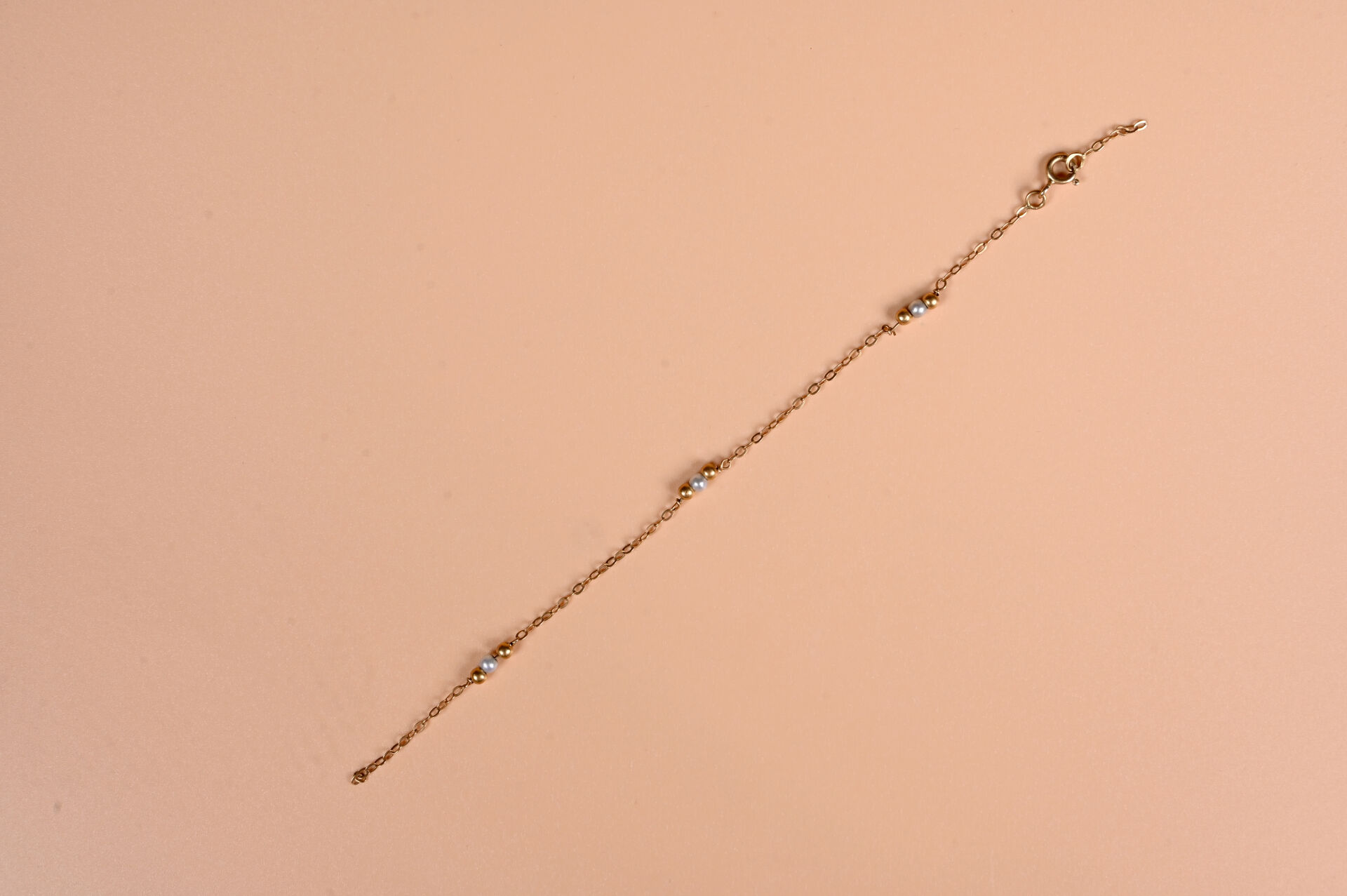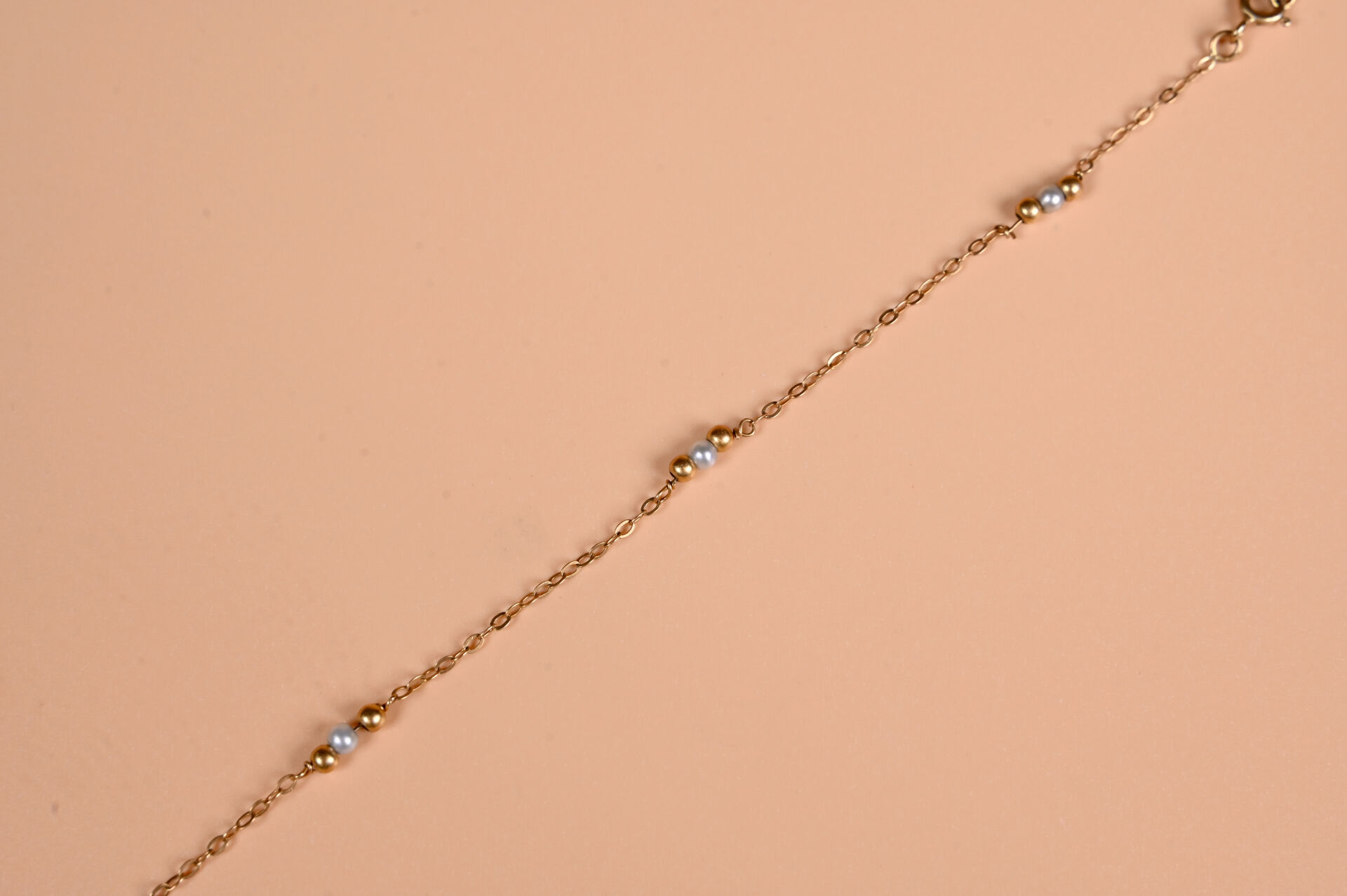 Bracelet accidenté en or jaune 18K 750/1000e et petites perles. Poids brut. : 1,2 g.