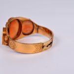 Bracelet rigide en or jaune 18K 750/1000e orné de trois camées coquille à profils de femmes. Décor ciselé de fleurs et feuillage. Fin du XIXe siècle. Poids brut : 31,15 g.