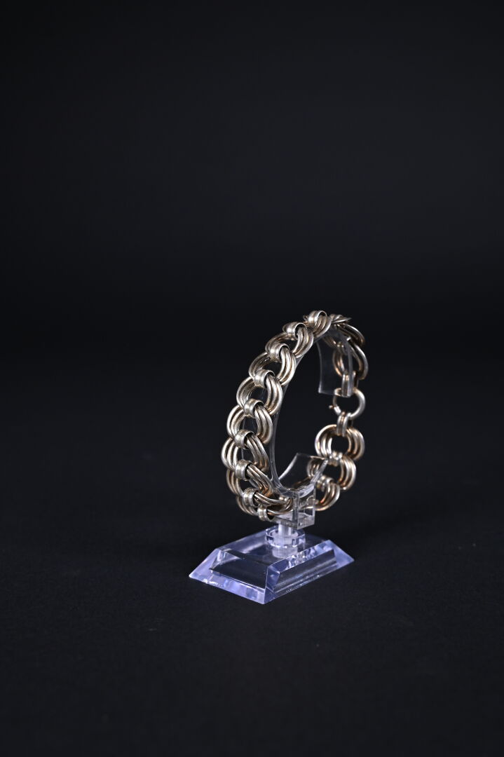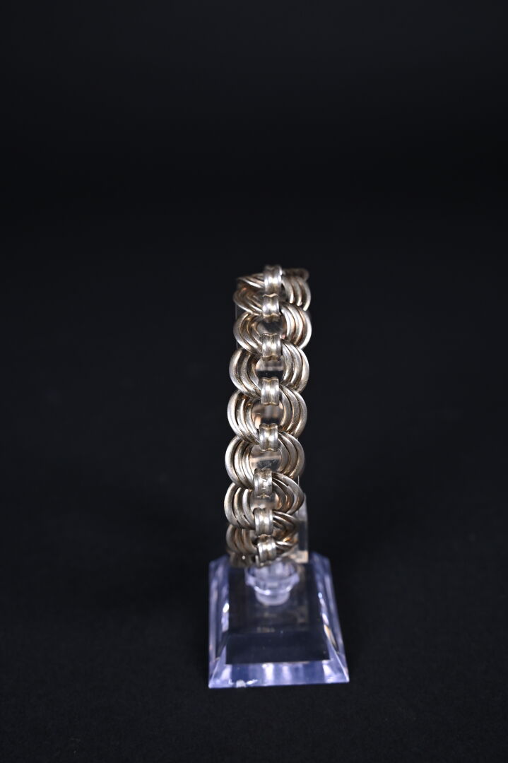 Bracelet souple à large maille anglaise en argent 925/1000e. Long. : 21 cm. Poids. : 47 g.