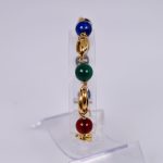 Bracelet souple à maille alternée de perles de pierres fines dont oeil de tigre et lapis en or jaune 18K 750/1000e. Long. : 18,5 cm. Poids brut. : 11 g.
