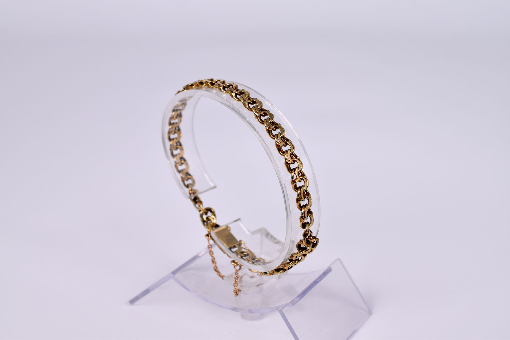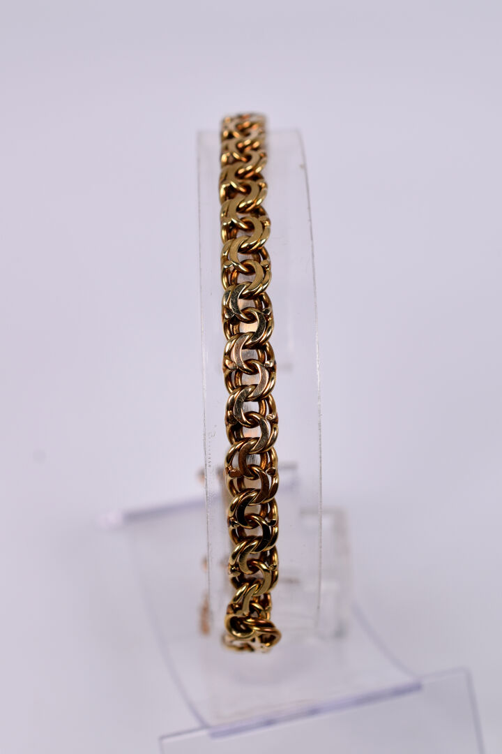 Bracelet souple à maille entrelacée en or jaune 14K 585/1000e. Poids : 13,02 g.