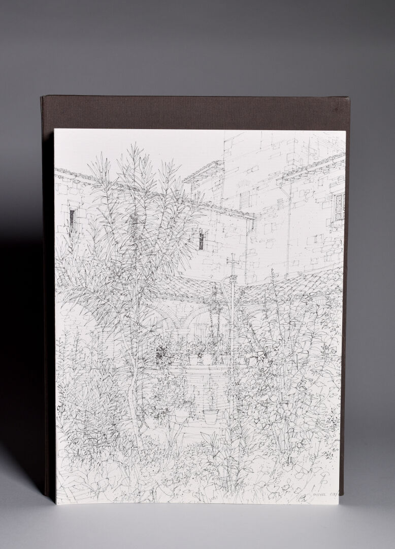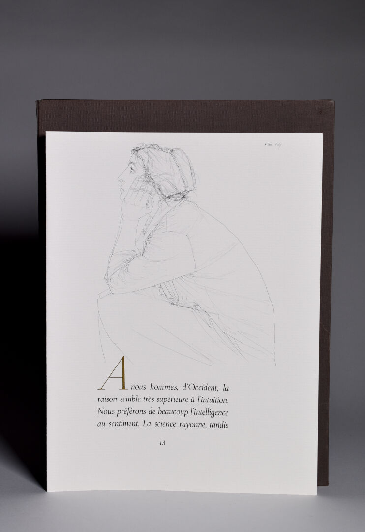 Petit in-folio en feuilles sous couverture à rabats illustrée en couleurs, boîte-écrin de
