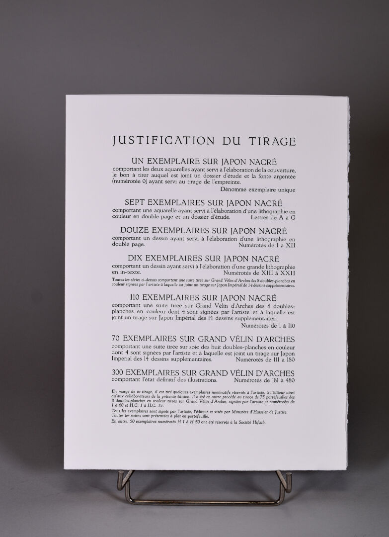 530 exemplaires. UN des 70 numérotés sur grand vélin d’ARCHES