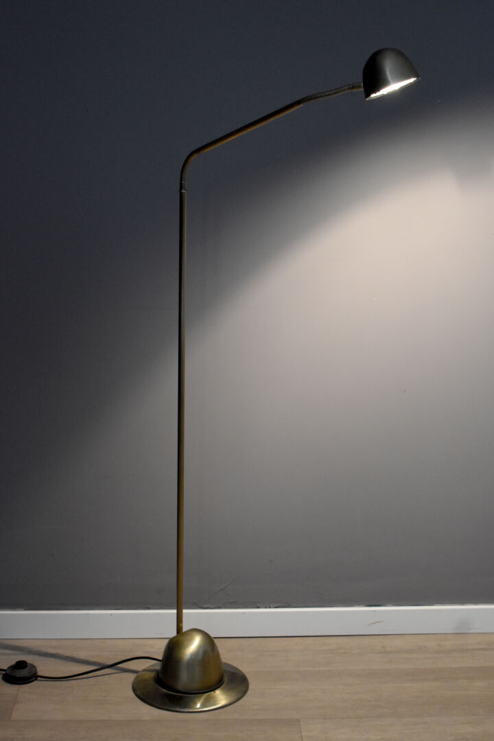 BRILLIANT. Lampadaire liseuse en métal brossé. La hauteur ajustable. Haut. max. : 147 cm.