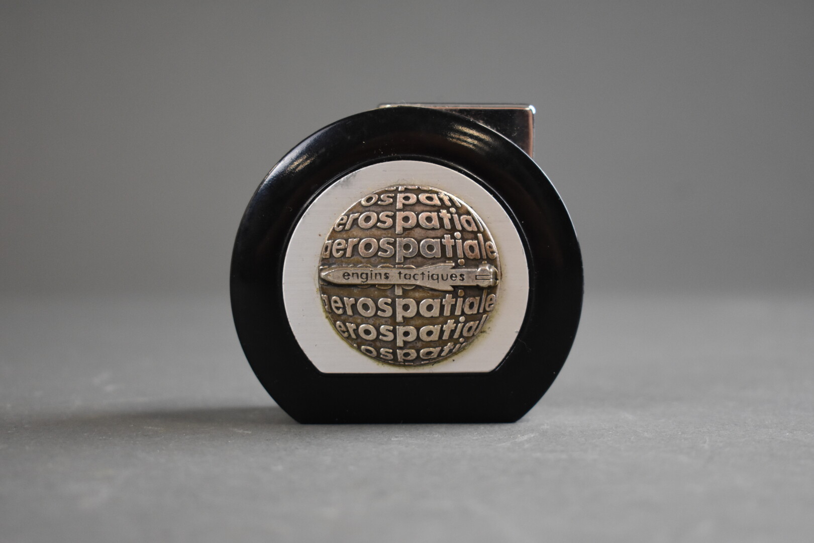 Briquet en aluminium et plastique noir « Aerospatiale engins tactiques ». Haut. : 6,6 cm.