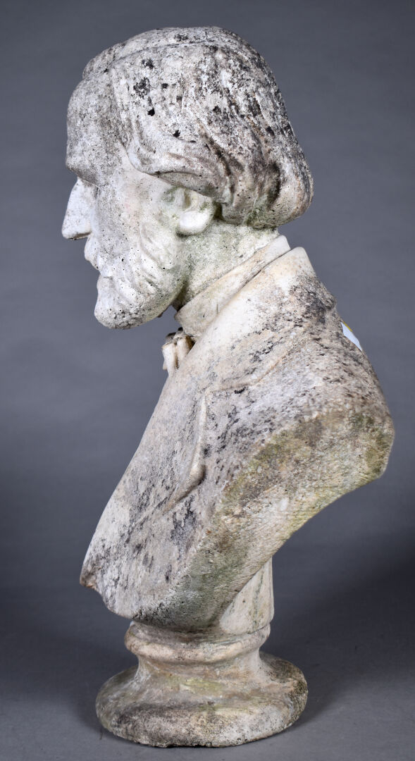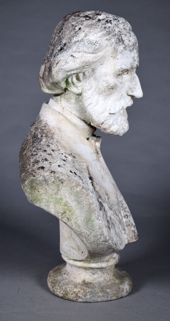 Buste en pierre reconstituée représentant Giuseppe Verdi. Haut. : 45 cm.