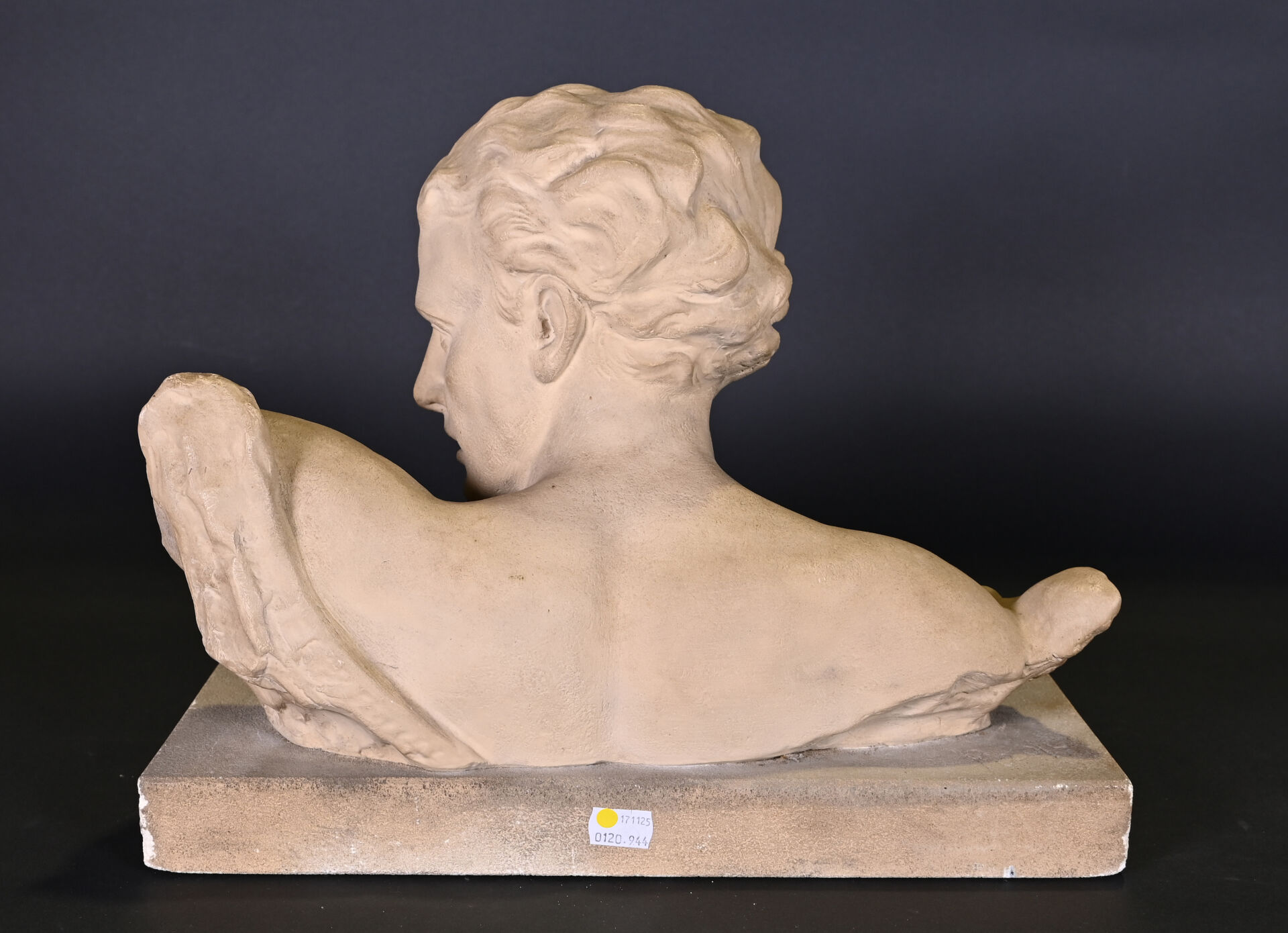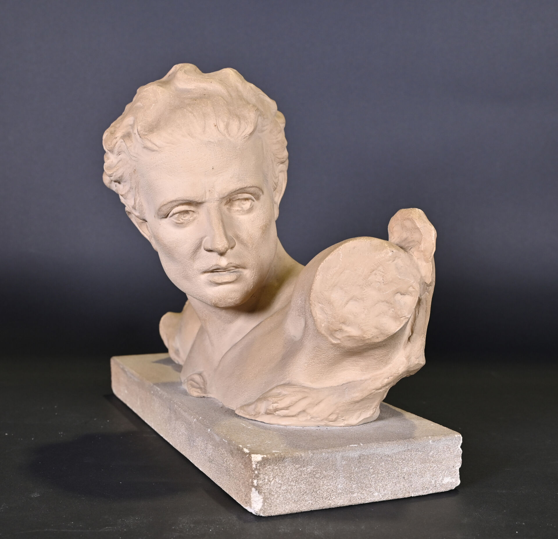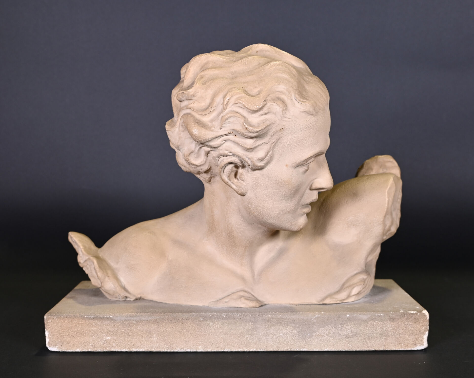 Buste en plâtre représentant un homme de profil. Signé sur la terrasse PUGI. Haut. : 32 cm.