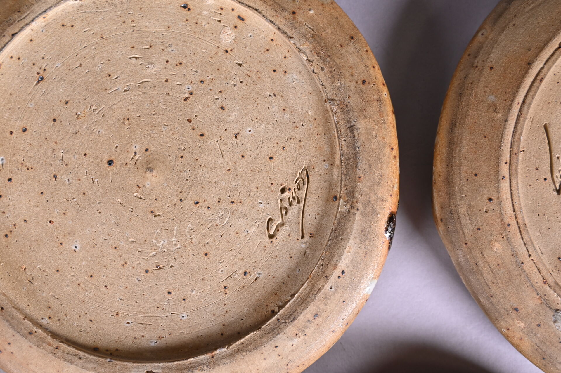 C BIGOT (XXe siècle). Suite de 5 coupes en céramique émaillée ocre. Marquées au dessous. Larg. : 15 cm.